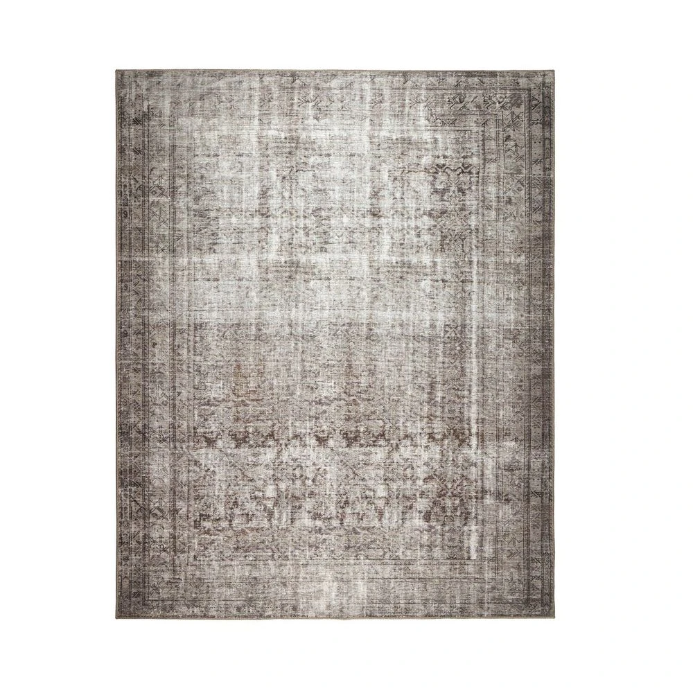 A jute-blend rug is power-loomed in Egypt. Each pattern is created from a high-quality scan of a vintage rug. A team of graphic designers then perfects the pattern and colors to closely resemble the original rug. The result: a textural and versatile piece that looks authentically antiqued. Allow for a slight variation in size, up to 5%, for this rug.