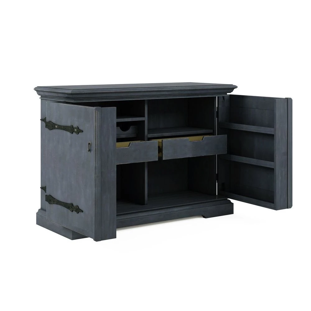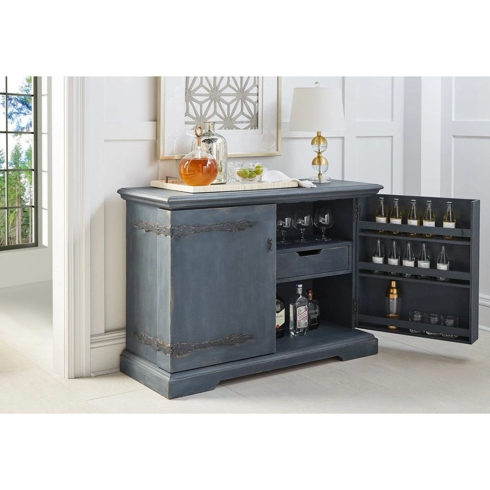 Whether you’re hosting an intimate gathering or a grand soirée, this bar cabinet will be your trusted companion, offering both functionality and elegance. A testament to impeccable craftsmanship and meticulous attention to detail, including decorative hinges, this piece promises to elevate your home entertainment experience to new heights. Functionality takes center stage with this piece, offering unique organization and storage solutions within easy reach.
