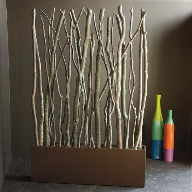 Regional natural alder is a fast-growing species that grows in a variety of shapes, sizes, colors, and textures. Poles are firmly attached inside of our custom bronze-black planter and loose rocks are shipped separate; assembly is required. Our planters can be used with most combinations of vertical elements. Contact us for a quotation of your custom design. Indoor only. Each piece is handcrafted, and variations will occur. We cannot guarantee that your computer monitor’s display of any color will be accurate. Natural exfoliating bark will fall while displaying. Surface cleanup may be required. Measurements are overall estimated dimensions of item. Production times may vary due to quantities ordered and current schedule. Weight of this item is an estimated average as each piece is different.