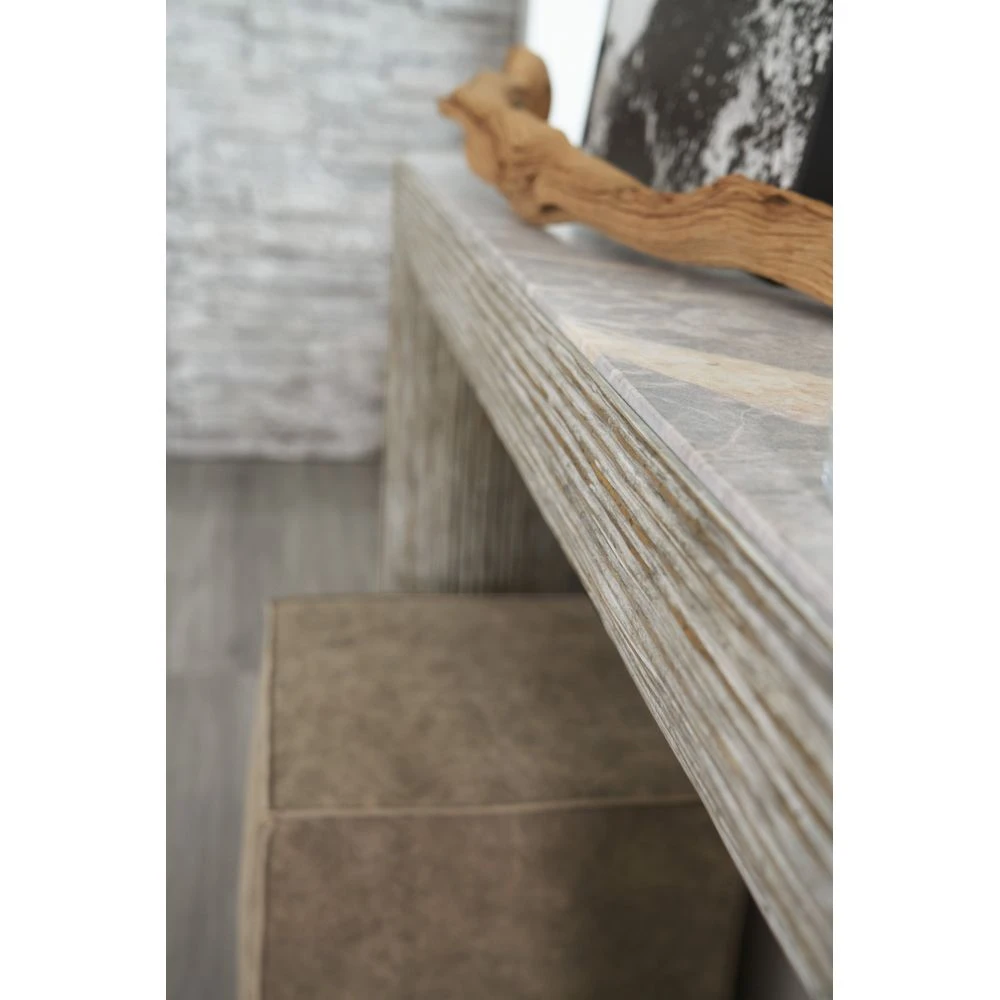 - Finish: Brie: a grey-tone with organic reeded details. Crema marble top