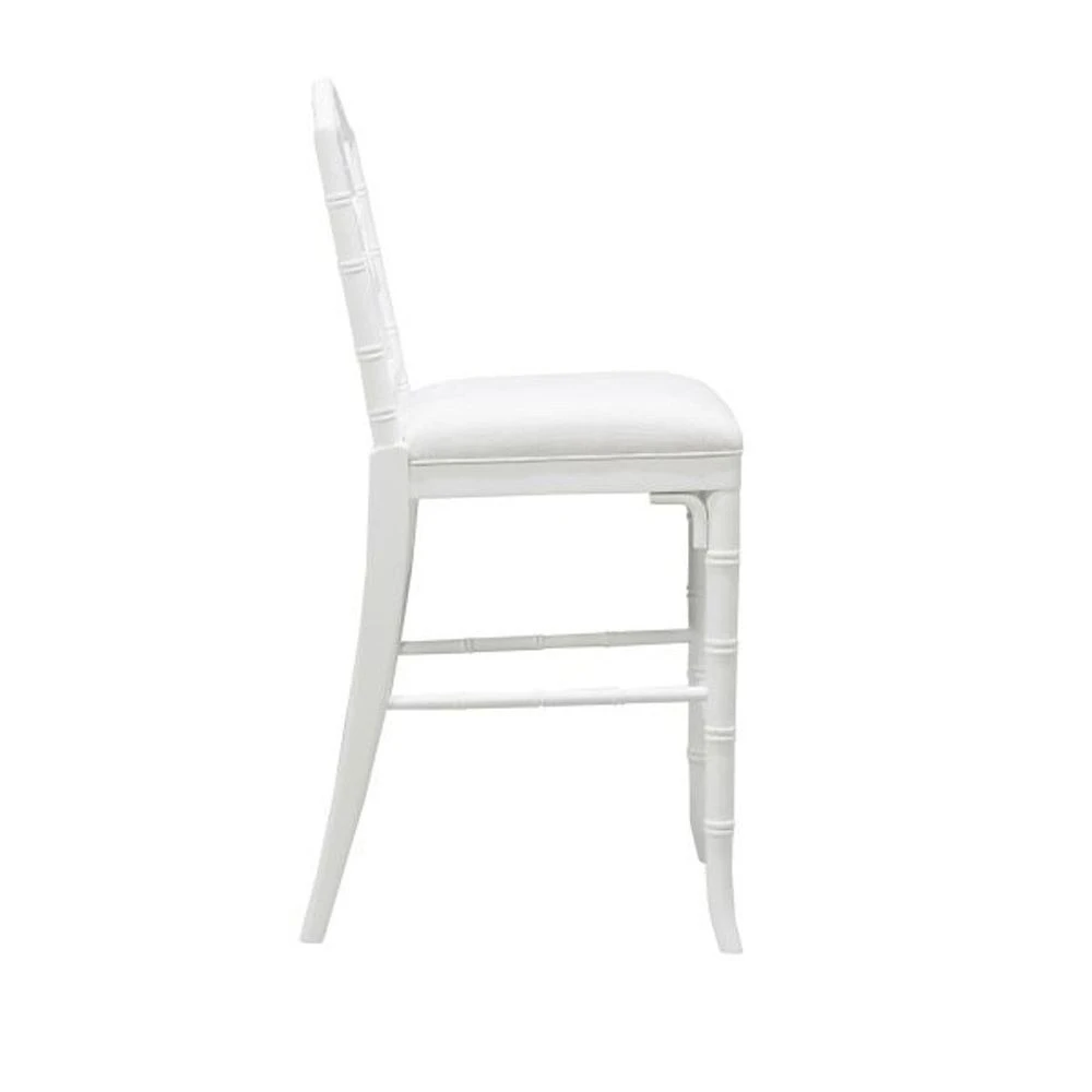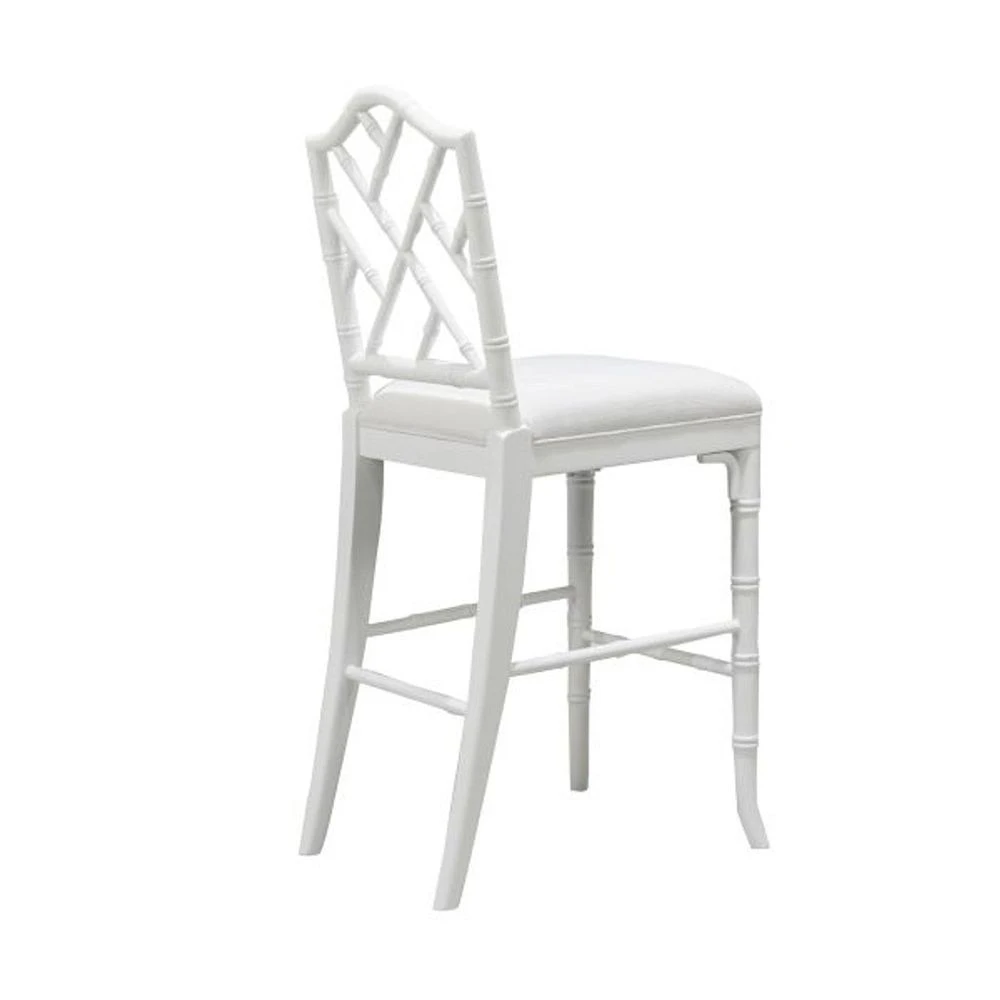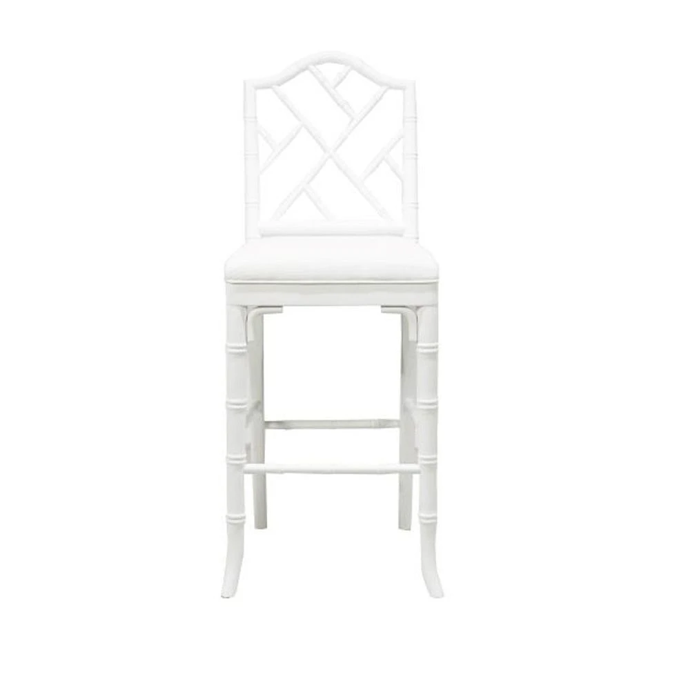Description: With its Chinese Chippendale styling, the Annette counter stool is a timeless classic in any environment. Annette’s turned, bamboo profile and matte white finish evoke an organic look and feel, while its crisp linen upholstered seat offers a cozy perch.