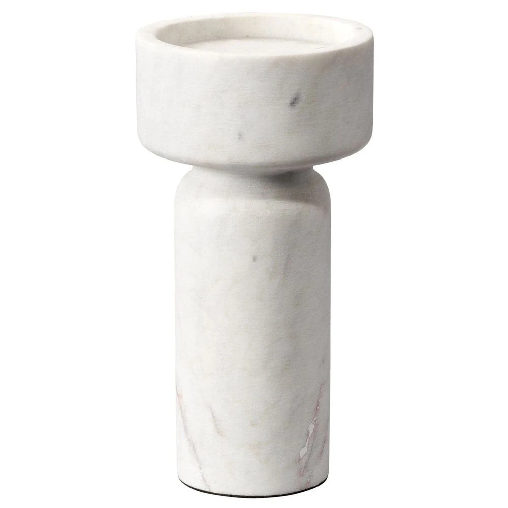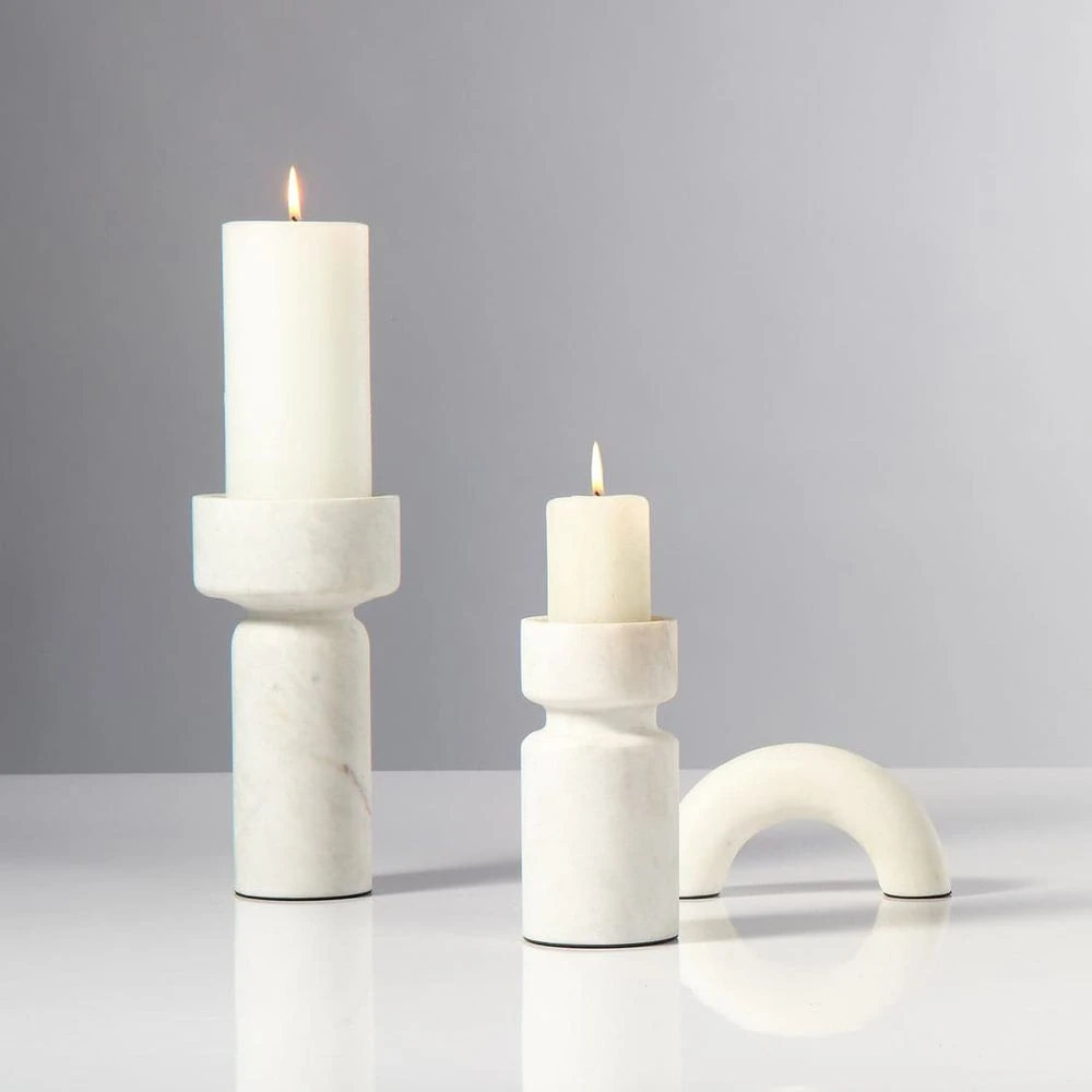 Beautifully artisan-carved of clean, crisp white marble, this sleek, contemporary candlestick is a marvel of modern elegance. The simplicity of its lines allows the natural stone to shine, highlighting and honoring the intrinsic veining, colors, and patterns of the celebrated material, and ensuring that no two will be identical. They are recommended for use with 3″ pillar or ball candles.