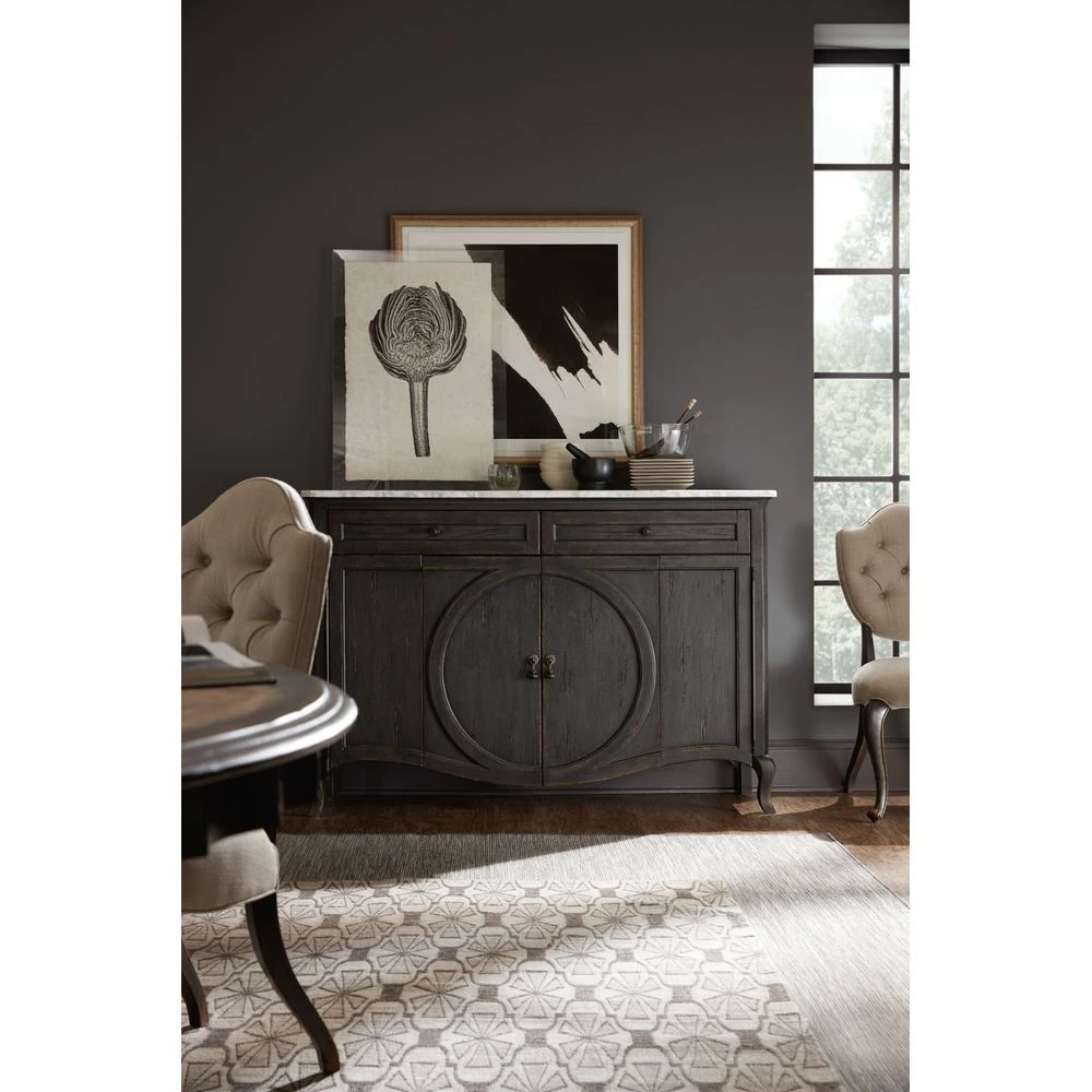 - Material: Poplar and Hardwood Solids with Oak Veneers and Marble