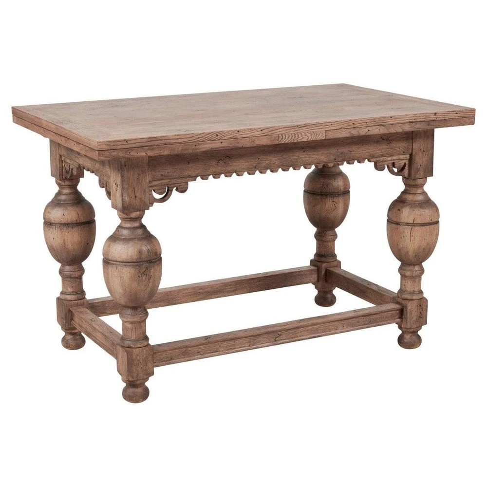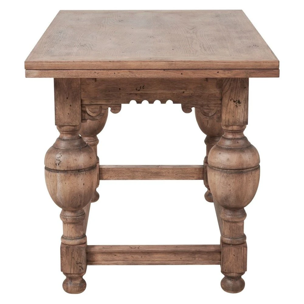 Feature Bullets: A classic farmhouse draw table finished in Burnished Oak and featuring two 20.5in wide, self-storing leaves.