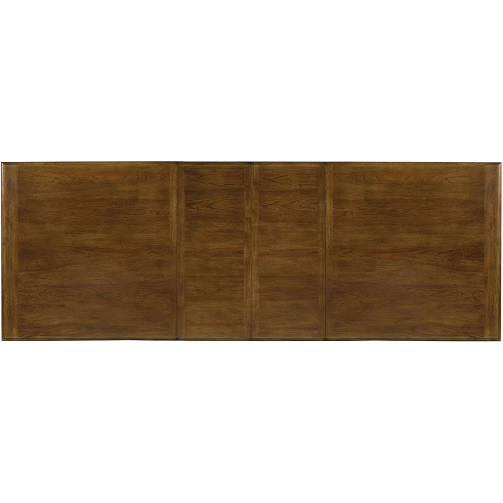 Inspired by French antiques and influenced by classic farmhouse design, the Archivist Trestle Table is an inviting gathering table for welcoming family and friends alike. The classic pedestal bases and top are finished in a soft casual brown over Pecky Pecan, for a rustic authentic look. With two 18-inch leaves, the table extends to 122 inches long to accommodate two arm chairs and six side chairs for large gatherings. Without the leaves, the table will accommodate two arm chairs and four side chairs. A design archive that captures epic European and American style elements spanning continents and centuries, Archivist exudes a larger-than-life ambience. With a world-traveled pedigree, Archivist embraces both grand opulence and beloved, comfortable and simple forms.