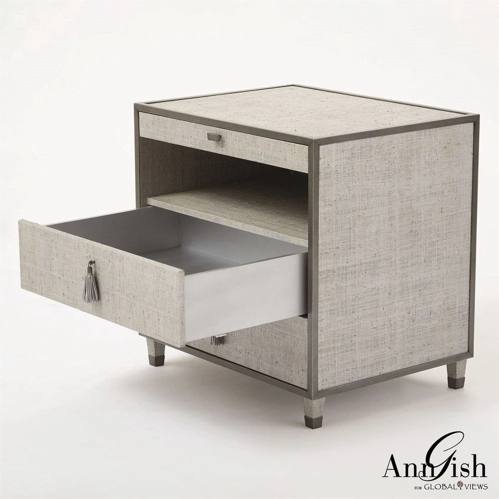 The Argento collection is inspired by finely textured, intricate Florentine silverwork, mixing soft shine and modern silhouettes. Each piece mixes silvered raffia coverings with pewter metal trim.