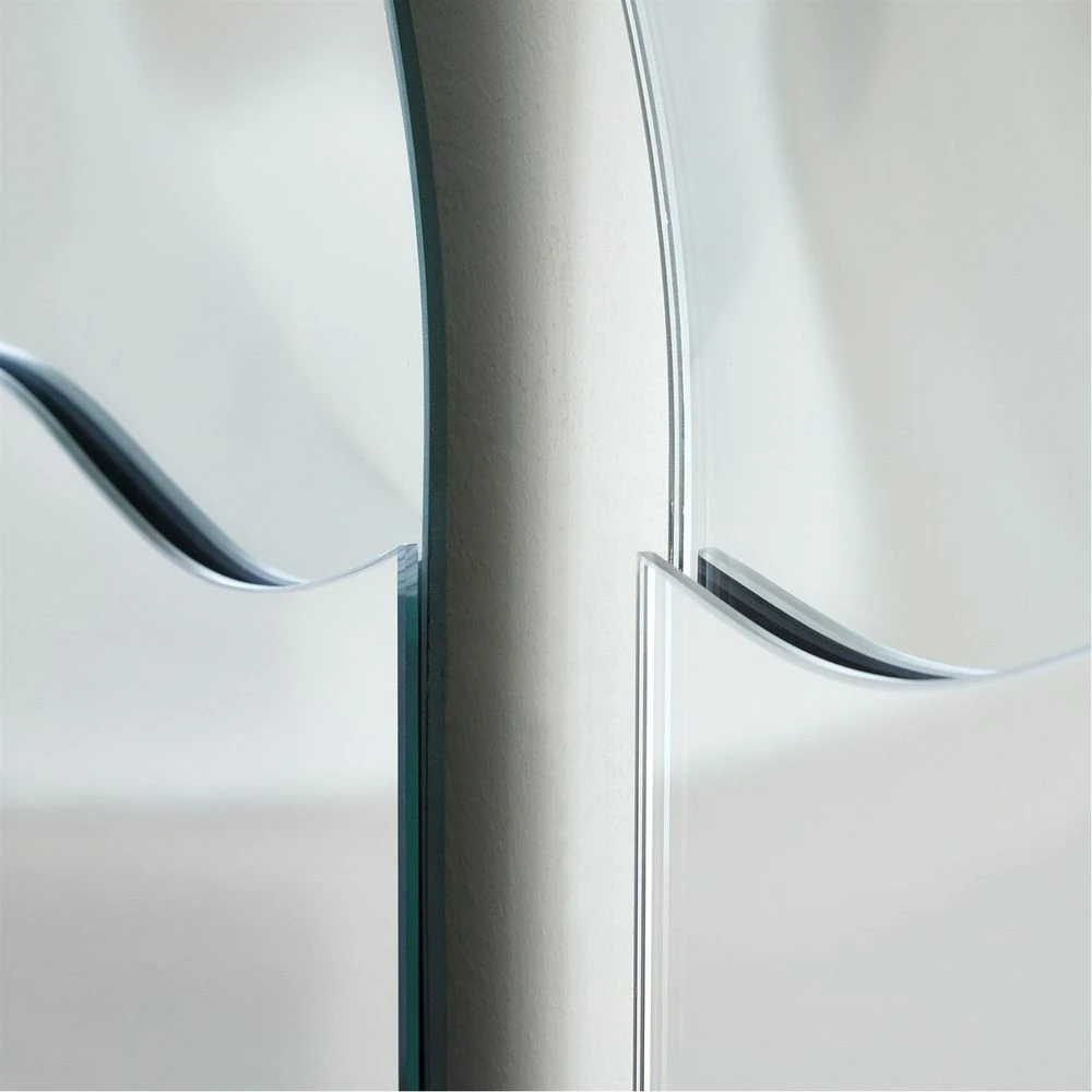 Description: The Asymmetrical Ripple Mirrors are stunning, hand-formed works of art crafted from Italian glass. A meticulous artisan technique melts a thick piece of glass over a sculpted form, creating organic etchings that accentuate the design’s fluid curves and dynamic movement. Whether displayed individually or grouped together, these mirrors make a bold, sculptural statement on any wall.