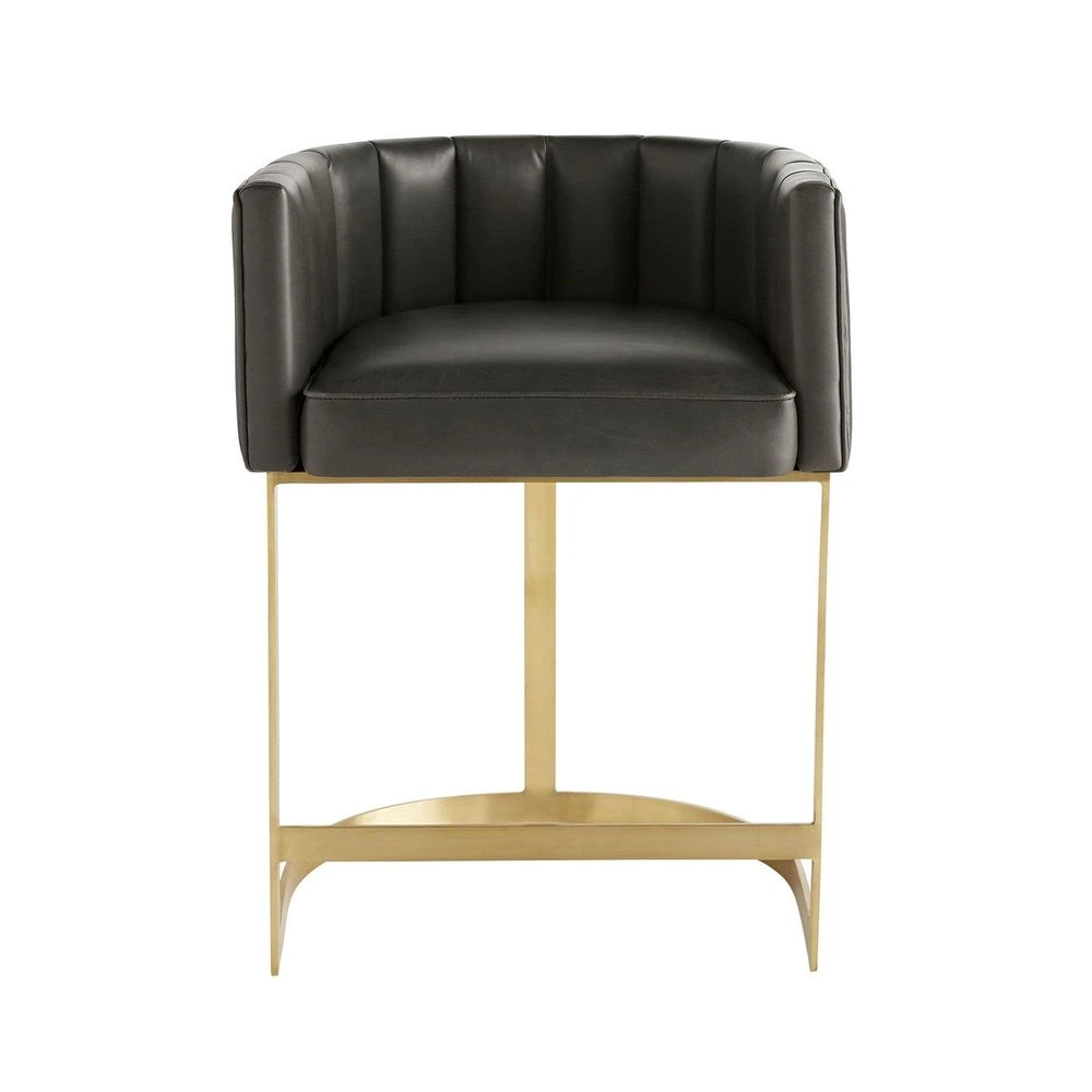 Drawing on the modernity of contemporary design our Nikolina counter stool showcases a modish yet timeless profile. The top-grain graphite leather in combination with antique brass modernizes the half-circle shape that echoes the design of traditional tub-style chairs.