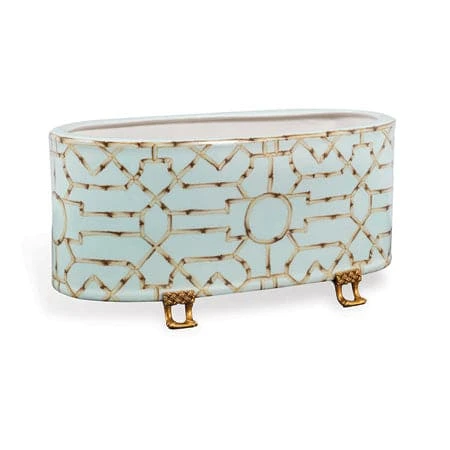 - Named in honor of famed decorator Billy Baldwin, and inspired by one of his favorite wallpapers by Scalamandre; the Baldwin oval planter is hand painted porcelain with embellishments of solid brass rellis feet. Perfect for so many uses–we love it for entertaining on the sideboard