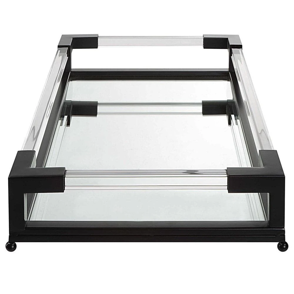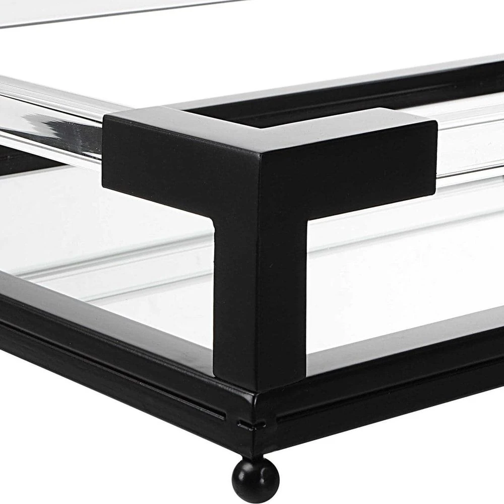 - Materials: Beveled Mirror, Gold Leaf, Metal & Acrylic Handles