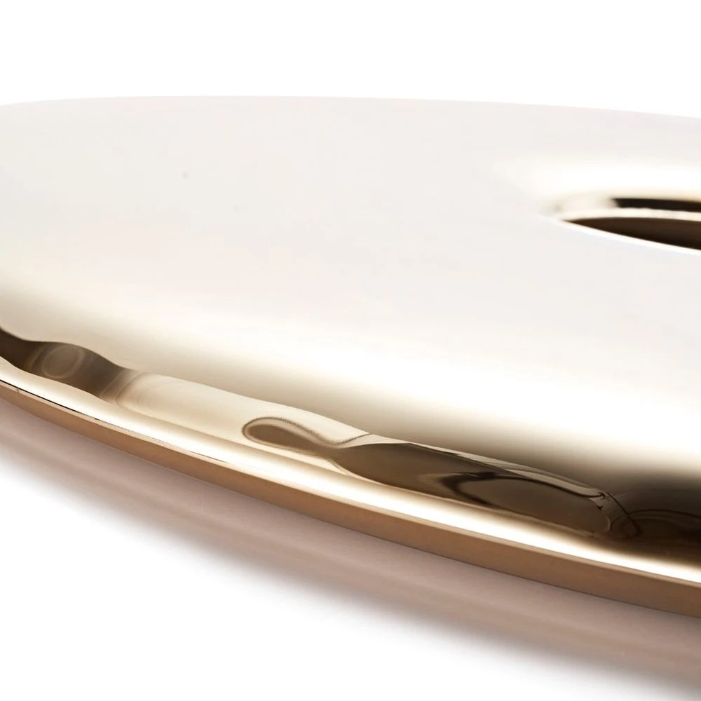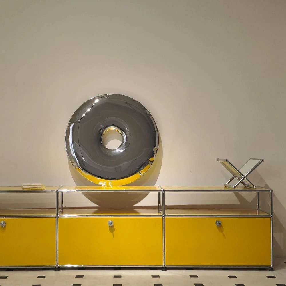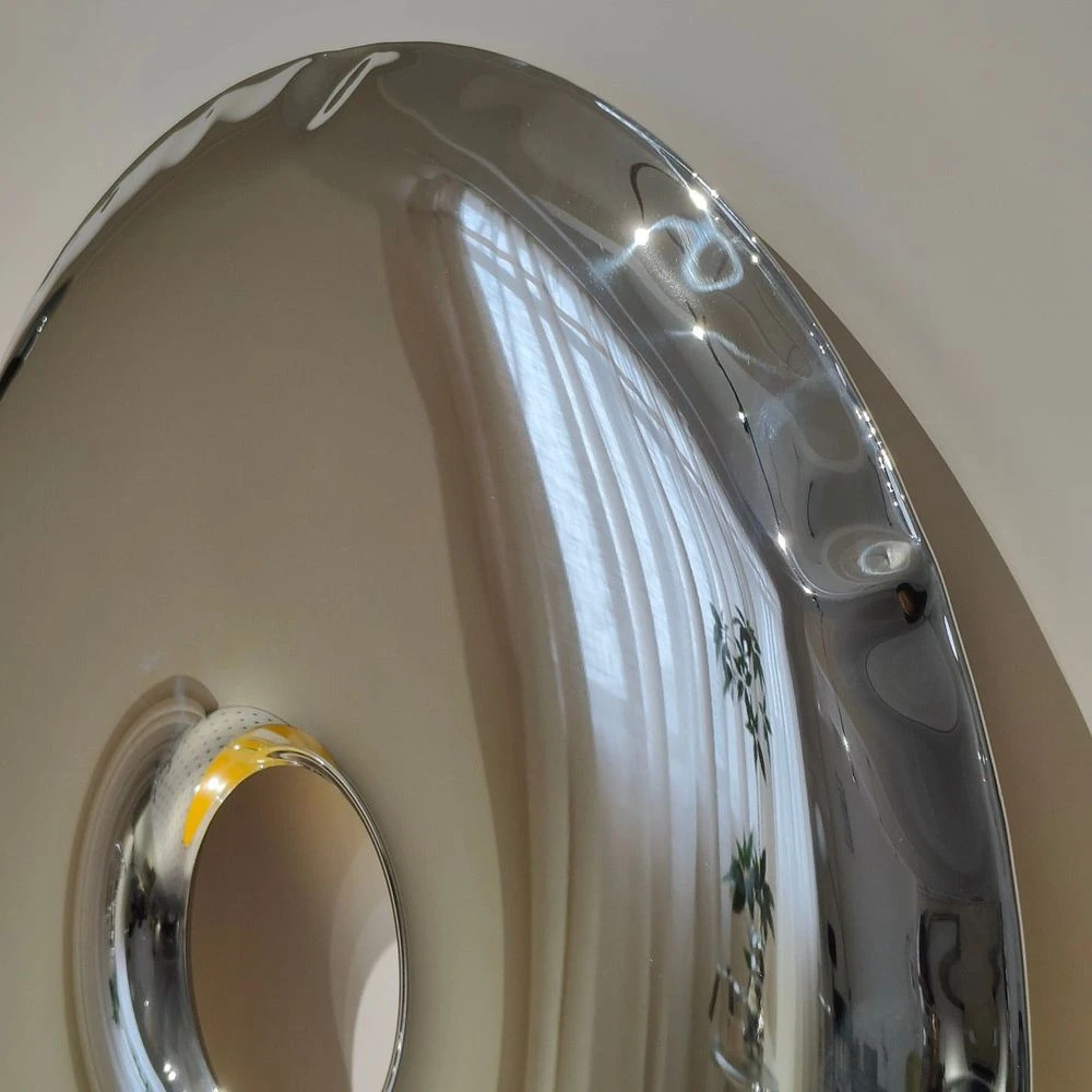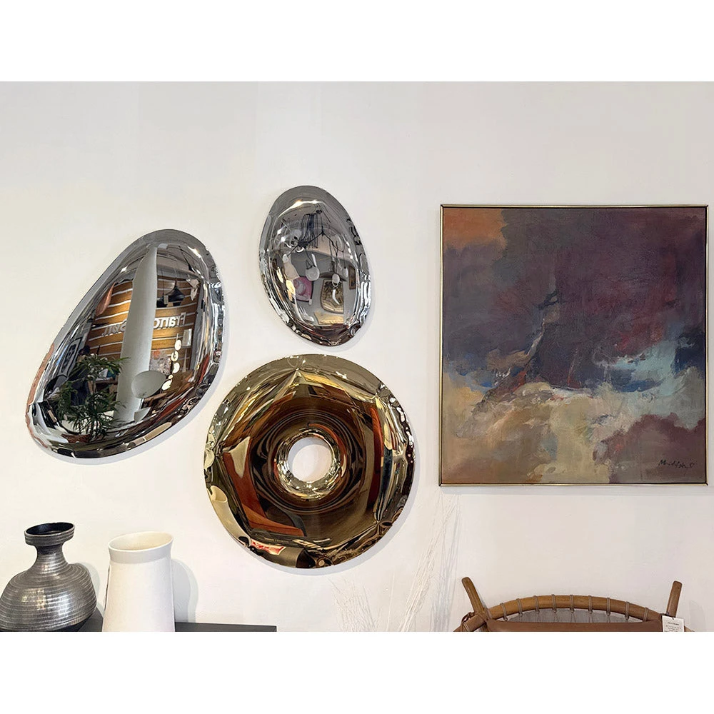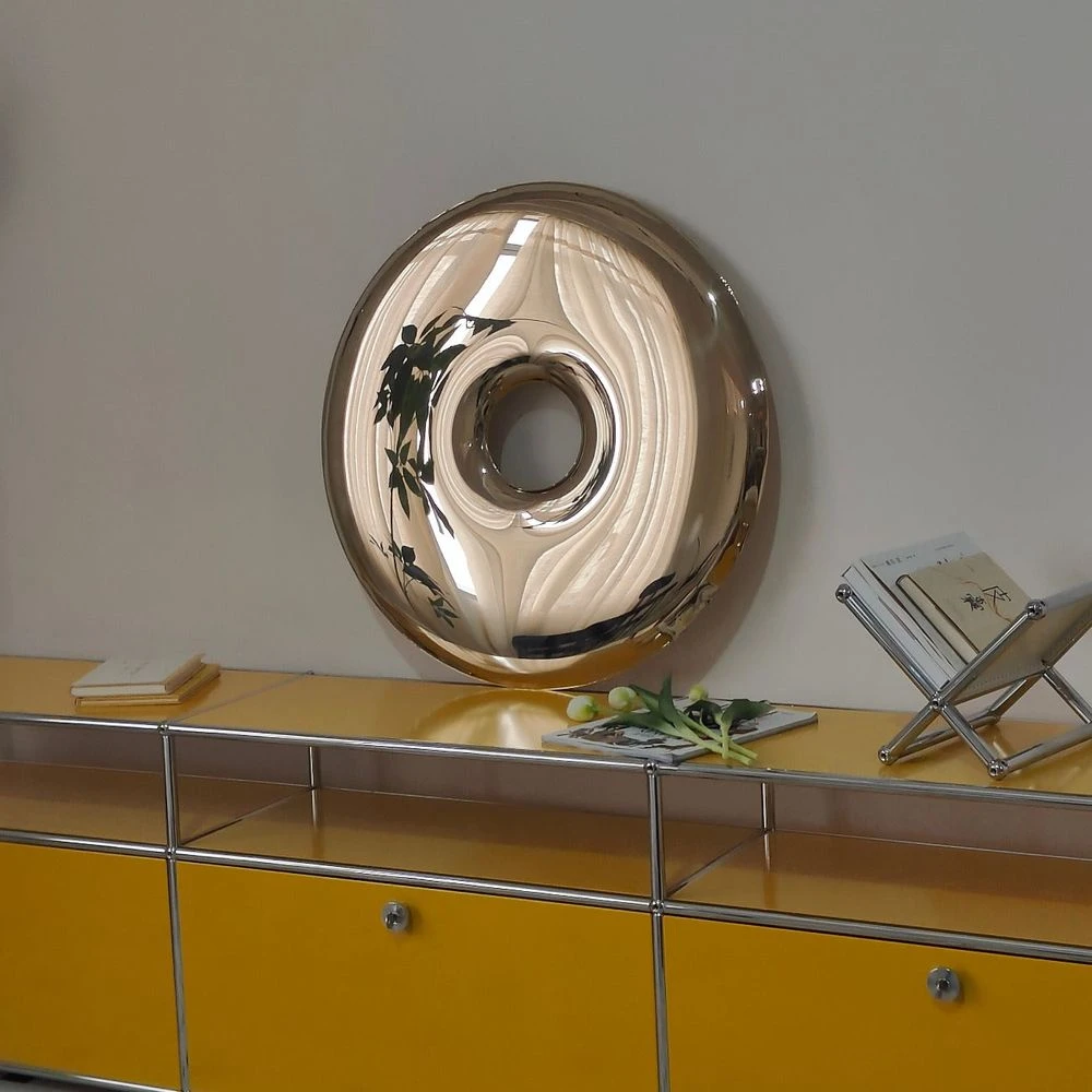 Elevate your space with the Balloon Ring Wall Sculpture, a harmonious blend of art and utility. Crafted from robust stainless steel, this wall sculpture exudes elegance in its donut-like form, featuring a highly polished finish that captures and reflects light to mesmerize and expand your room’s sense of space. Available in a chrome finish for a timeless allure or a champagne gold finish for a contemporary touch, this sculpture is more than just wall decor. It can also act as a mirror. It’s a statement piece that promises to enchant any viewer. Whether gracing a chic living room or a sophisticated office, it stands as a testament to modern design and refined taste.