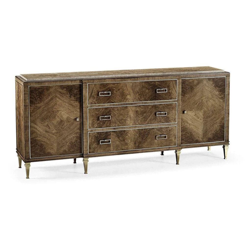 - Materials: European Walnut Swirl veneer, Brass, Marble, Stainless steel