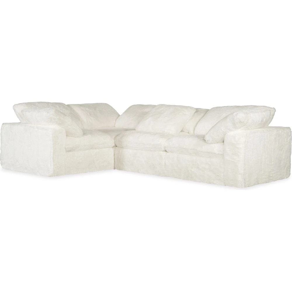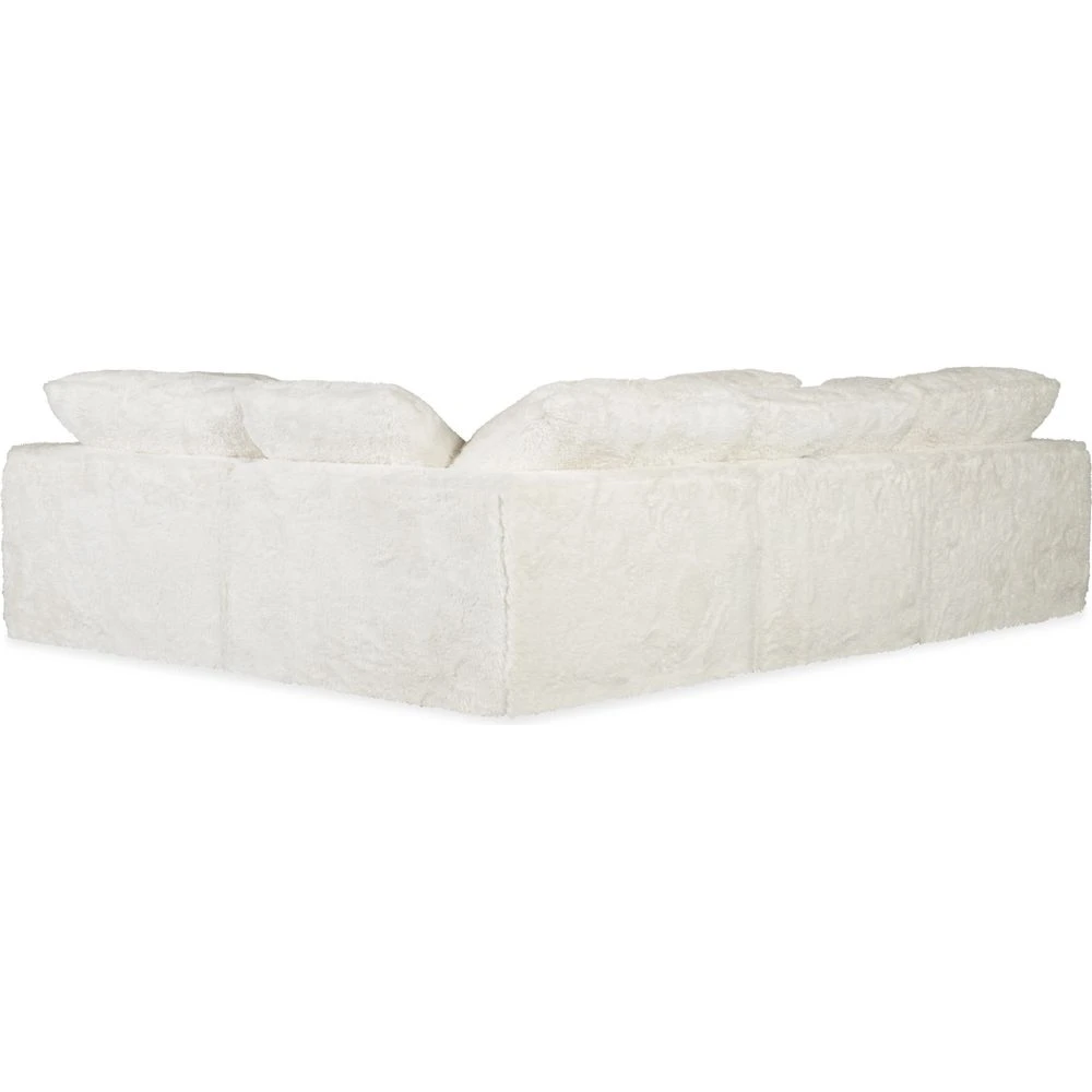Description: Wrap yourself in cozy with the Barefoot 4-seat comfort sectional, covered in the Yakety Yak natural-colored plush super-soft fabric. Consisting of 3 corner/arm components and one armless component with a loose pillow at each arm, the generously-scaled L-shaped sectional measures 125 inches wide by 90 inches deep.