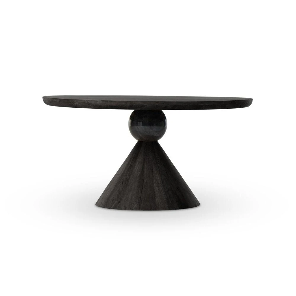 A sculptural showstopper inspired by Italian design. Finished in classic black, a cone-tapered parawood base supports a rounded tabletop separated by black-finished marble detailing. Seats four comfortably.