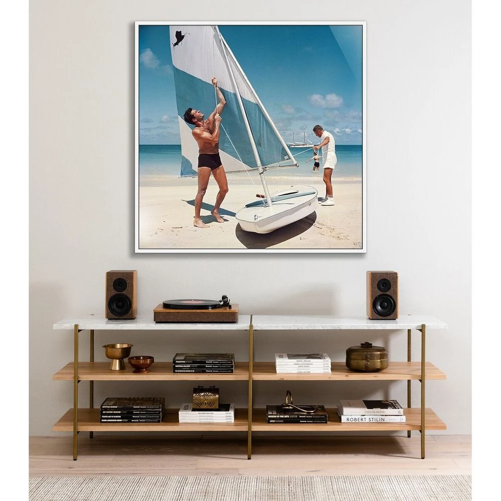 This specially selected work from the late influential photographer Slim Aarons is printed using ultra-modern ChromaLuxe technology for the first time ever. High in definition and gloss, images are printed in vibrant, saturated color on fade- and scratch-resistant recycled aluminum. Each is float-mounted with hand-selected framing designed to complement the print. Handmade in Austin, Texas, each piece includes a certificate of authenticity commemorating the partnership between Slim Aarons, Getty Images Gallery and Four Hands Art Studio. Photo courtesy of Getty Images.