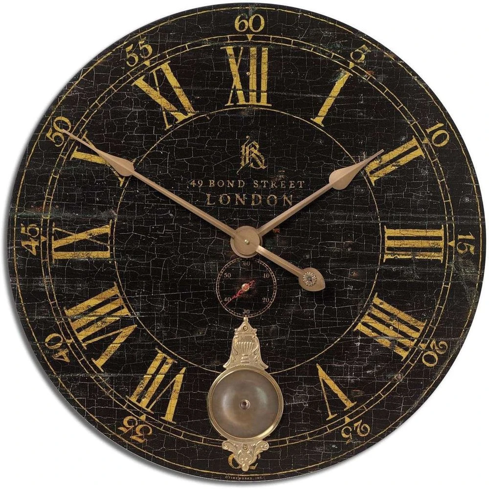 - Laminated Clock Face With A Weathered Crackled Look, Cast Brass Details And Internal Pendulum. Requires 2-aa Battery.