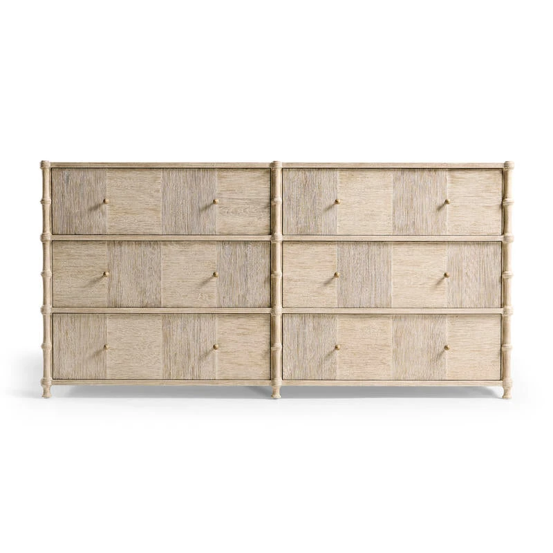 Description: The Bywater Dresser offers a relaxed yet refined look, featuring a beautiful washed acacia finish that brings a casual, light feel to any space. Its standout feature is the reeded parquet pattern on the drawer fronts, adding subtle texture and visual interest. With six spacious drawers, this dresser offers both functionality and elegance, making it a perfect addition to any bedroom.