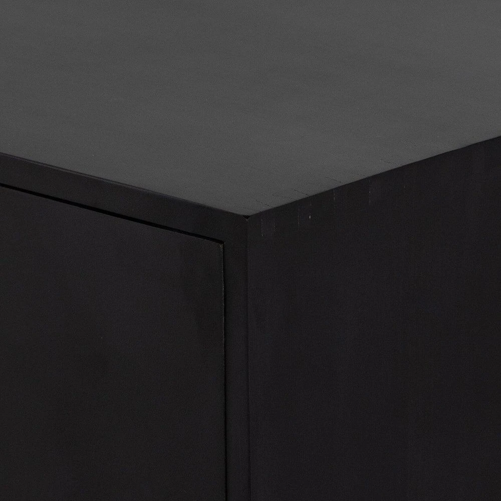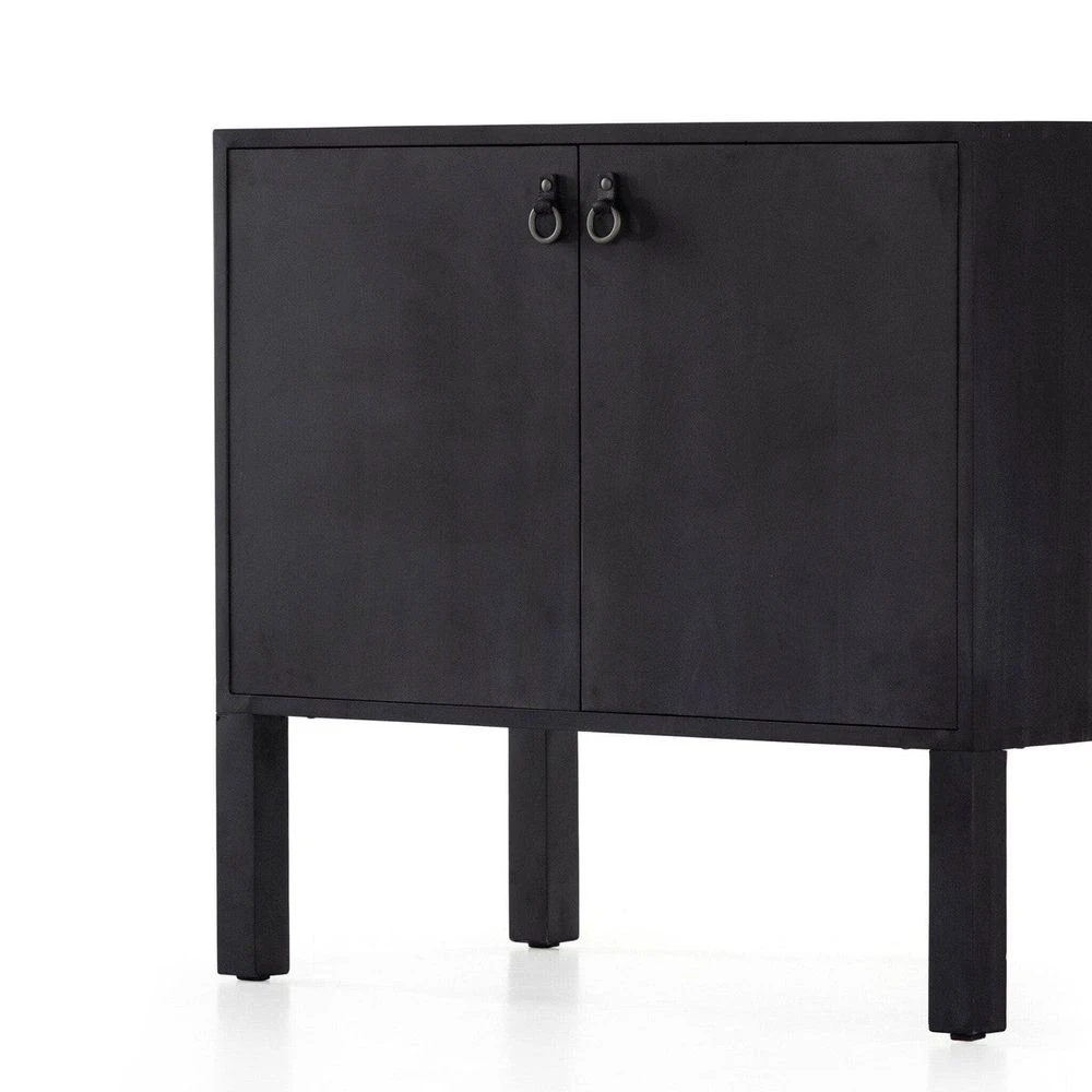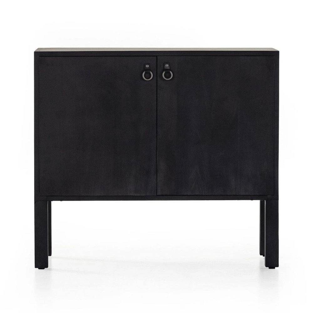 - Description: Beautifully simple in spirit. Black-washed solid poplar forms a Parsons-style bar cabinet, with iron and leather hardware for a material-driven update to Shaker-inspired styling. Inside, dual drawers plus generous bottle storage await drink go-tos and bar accessories.
