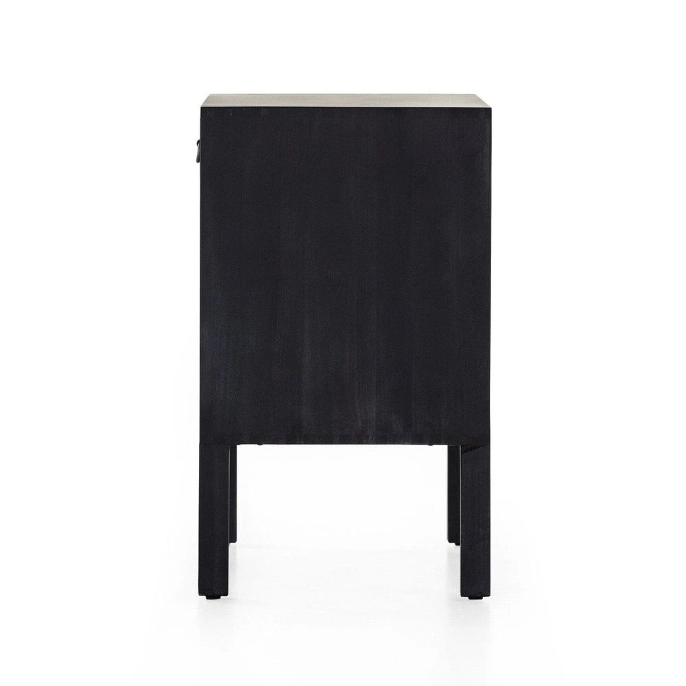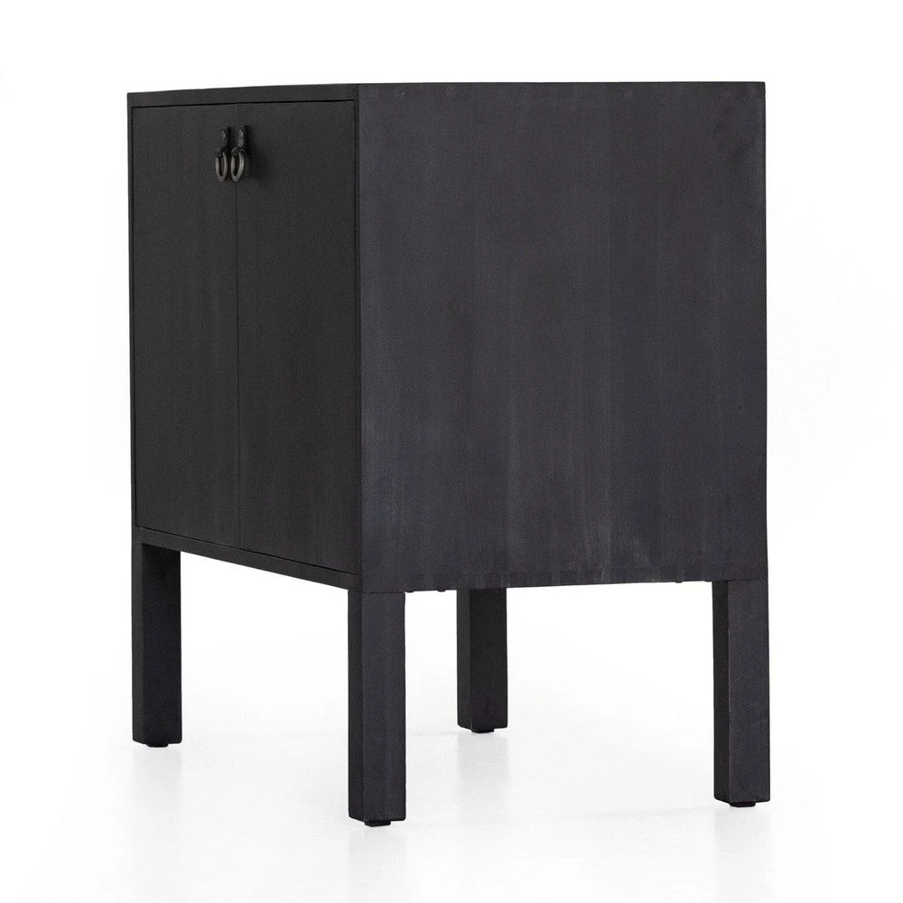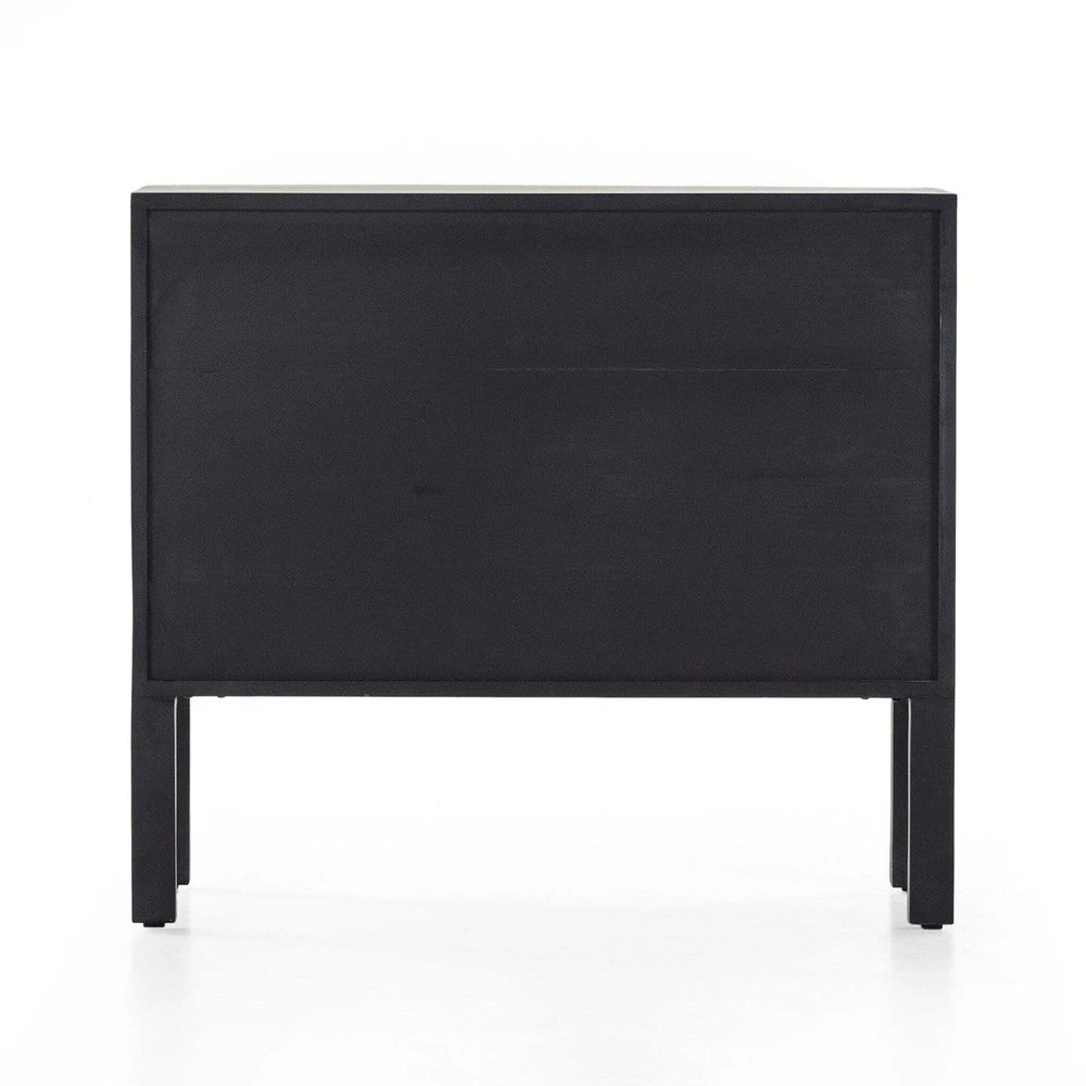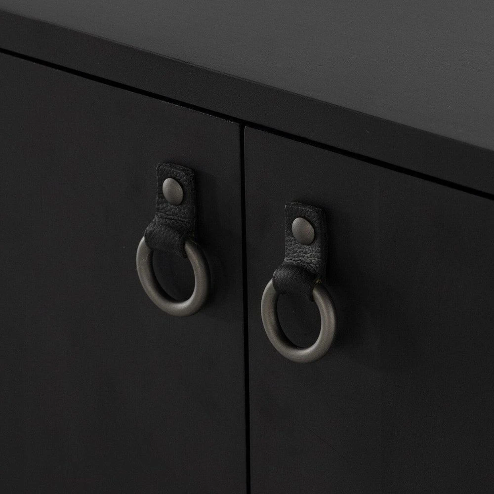 - Description: Beautifully simple in spirit. Black-washed solid poplar forms a Parsons-style bar cabinet, with iron and leather hardware for a material-driven update to Shaker-inspired styling. Inside, dual drawers plus generous bottle storage await drink go-tos and bar accessories.