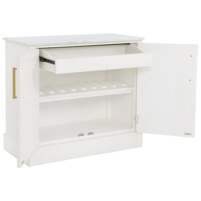 - Features: One interior drawer and one reversible shelf with wine storage. Standard with four casters