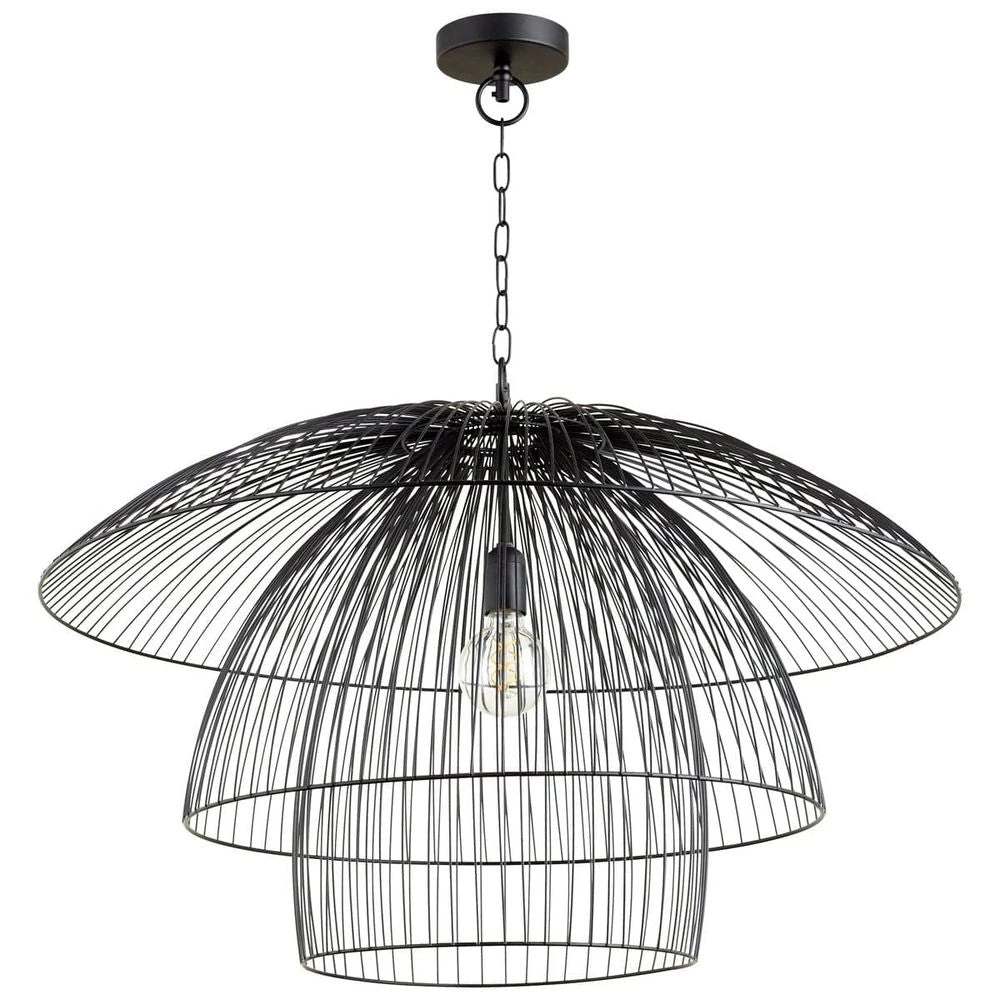 Illuminate your ensemble in eclectic style with the one-light Canopy pendant. This matte-black pendant is crafted from iron, featuring a three-tier open-frame shade that liberally diffuses light emitted from a single 60W medium based bulb. The design allows for the emission of an abundance of ambient light in every direction while offering a whimsical look fit for any modern, transitional, or boho-inspired space. Ten feet of adjustable cord gives some variety in height, allowing you to tailor to your space`s needs. Stack three over an island for a warm glow throughout your kitchen or line your hallway with a grouping for the perfect amount of light to guide your houseguests.