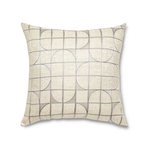 Soft grey, blue, and charcoal embroidery on a silvery jacquard with a graceful capsule design.