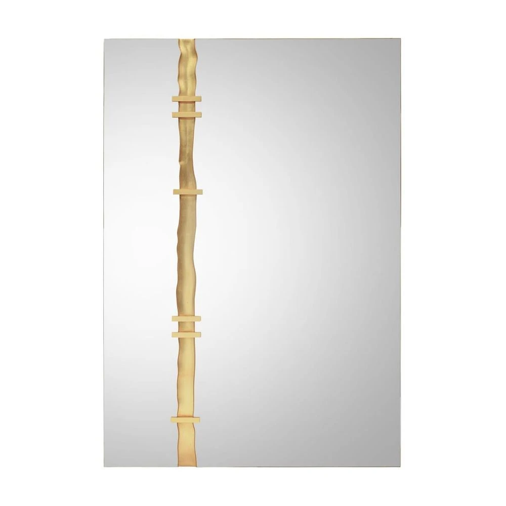 Golden rivets appear to hold both sides of this rectangular mirror together across a crevasse,also finished in exotic gold.