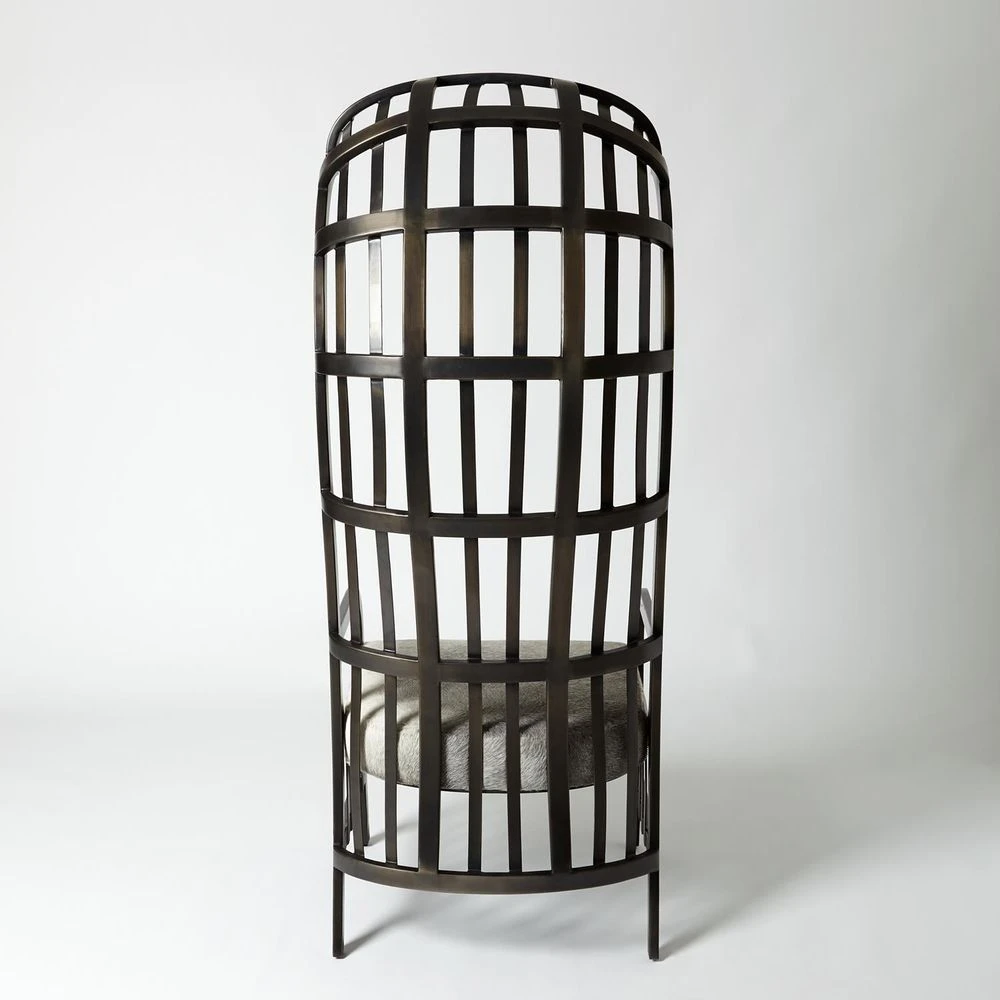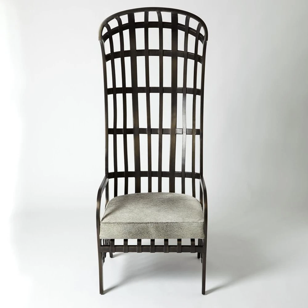 Description: The Studio A Cascade Chair juxtaposes decidedly masculine materials with a curvaceous feminine silhouette. Highly skilled Studio A Home artisans worked the iron into its dramatic shape and accented it with a rich leather or luxe hair-on-hide cushion, making the chair a remarkable statement piece.