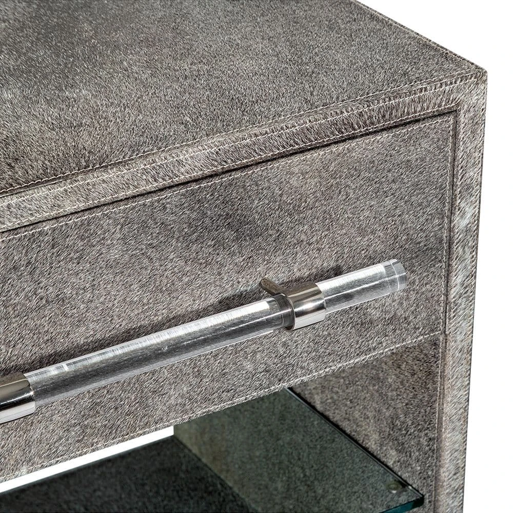 Boasting light natural hide and clear acrylic pulls with polished nickel metal accents, the Cassian Bedside Chest brings an unexpected, fabulous twist to a bedroom staple.