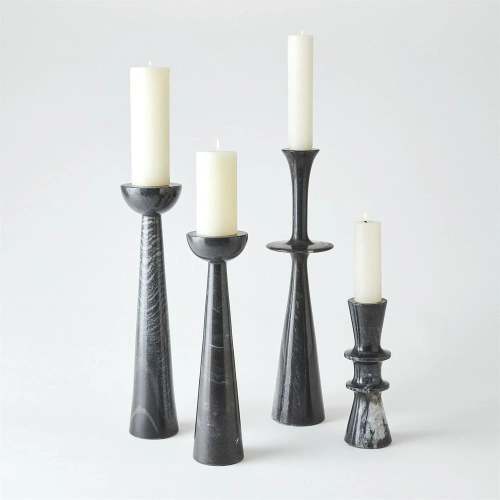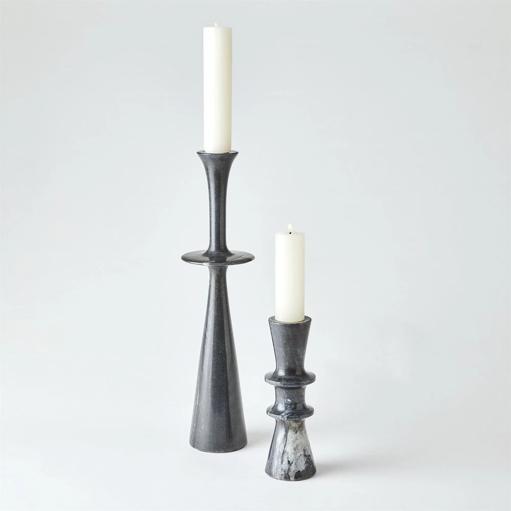 Description: The Center Flair Candle Stand is made of hand formed marble with a iron candle spike.