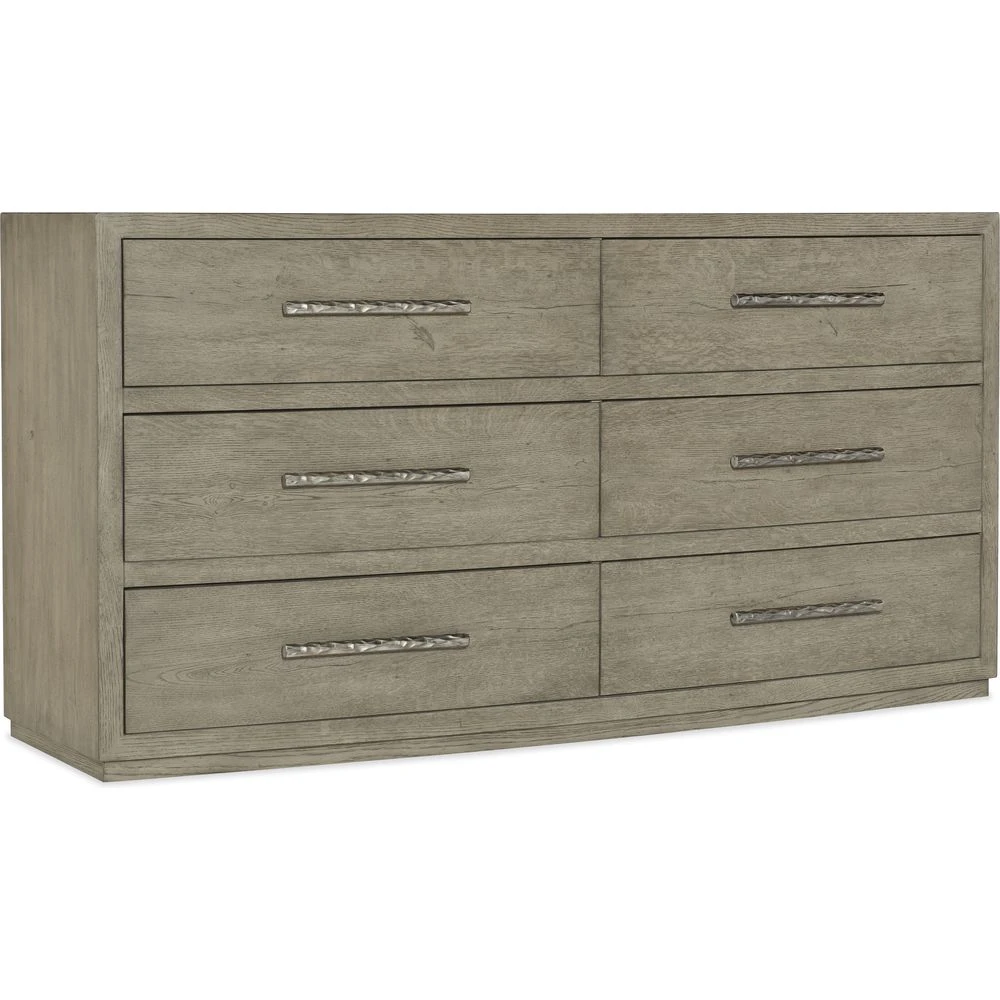 Capturing the essence of nature’s organic color palette and the aura of a rustic mountain cottage, Hooker Furniture introduces the Linville Falls collection. The whole home collection is designed for younger consumers looking for casual and contemporary furniture. Characterized by its rustic, weathered finish and clean lines paired with organic grain patterns, Linville Falls is constructed with split oak solids and veneers and has an overall organic aesthetic. It is featured in a soft Smoked Gray finish mixed with a Charred Black finish that is achieved through Shou Sugi Ban, a Japanese technique that creates an elegant burnt wood look. Its moderate scaling and fresh silhouettes offer a refreshing juxtaposition mixing old with new.
