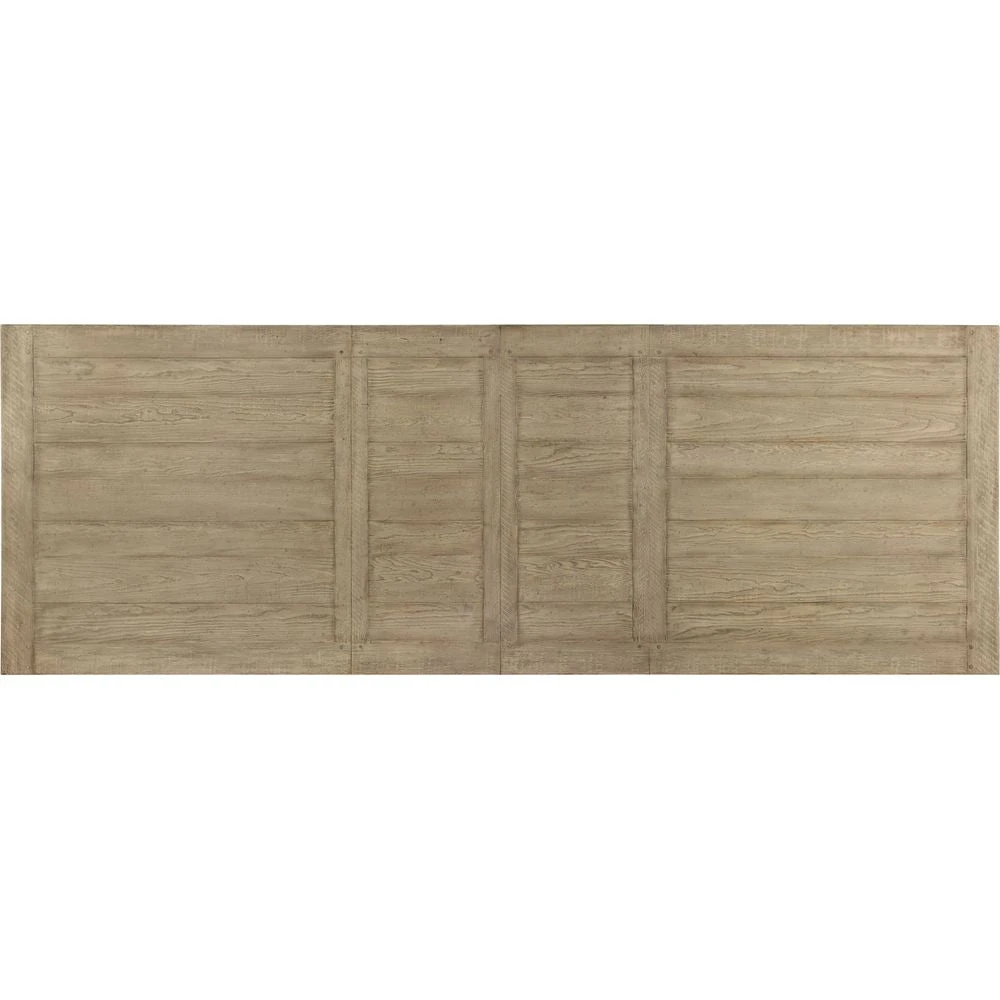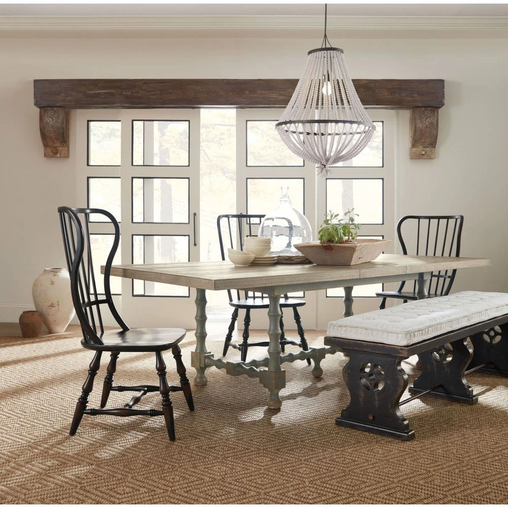Be transported to a romantic, rustic Italian farmhouse as you dine around the Ciao Bella 84-inch Trestle Table. The base has turned legs and a Timeworn Gray finish with hand-chiseling and wire brushing, and contrasts with a Flaky White top. The two 18-inch leaves extend the table to 120 inches, accommodating up to 10 guests. Beautifully crafted of Poplar Hardwood Solids with Pine Veneers. Inspired by the small farmhouses that dot the French and Italian countryside and have been in the hands of the same family for generations, Hooker Furniture introduces the rustic Ciao Bella Collection. The whole home collection is an eclectic mix of European farmhouse pieces that have the appearance of furniture that has been refinished multiple times as it has passed through the generations. Ciao Bella includes bedroom, dining room, occasional, home office and accent furniture, and features a finish called Timeworn Gray that accentuates the historical nature of European farmhouses – many of which include a variety of furniture styles that have been added by each generation of owners.