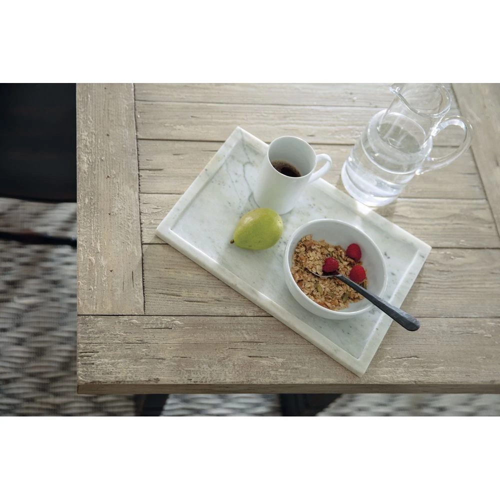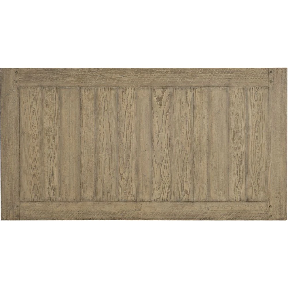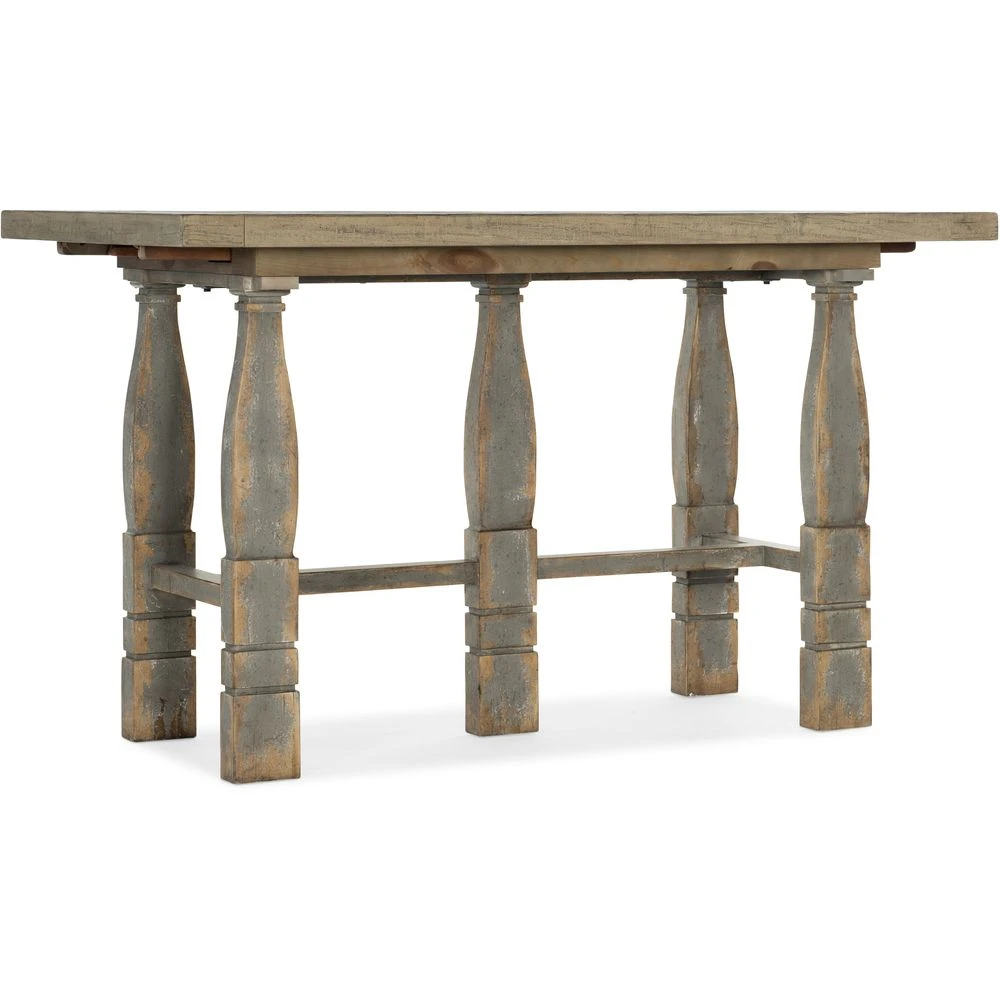 Equally at home in a European Cafe or an American Bungalow, the charming Ciao Bella Friendship Table is height adjustable, so you can use it at counter height or traditional dining height. Crafted of Poplar and Hardwood Solids and Pine Veneers, a black base contrasts with a Flaky White top. Two 12-inch leaves may be extended for extra seating. Inspired by the small farmhouses that dot the French and Italian countryside and have been in the hands of the same family for generations, Hooker Furniture introduces the rustic Ciao Bella Collection. The whole home collection is an eclectic mix of European farmhouse pieces that have the appearance of furniture that has been refinished multiple times as it has passed through the generations. Ciao Bella includes bedroom, dining room, occasional, home office and accent furniture, and features a finish called Timeworn Gray that accentuates the historical nature of European farmhouses – many of which include a variety of furniture styles that have been added by each generation of owners.