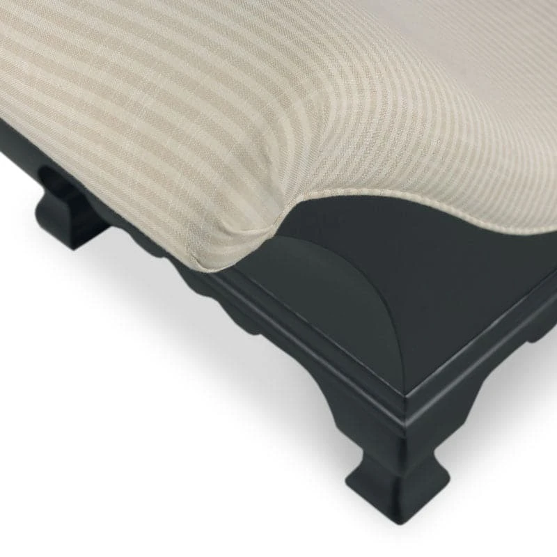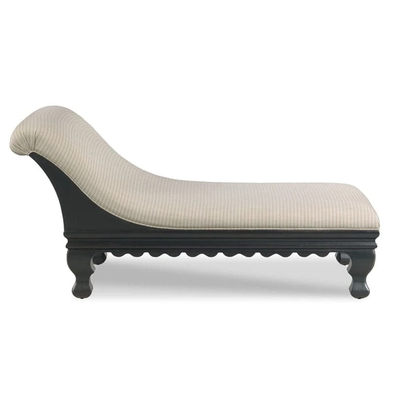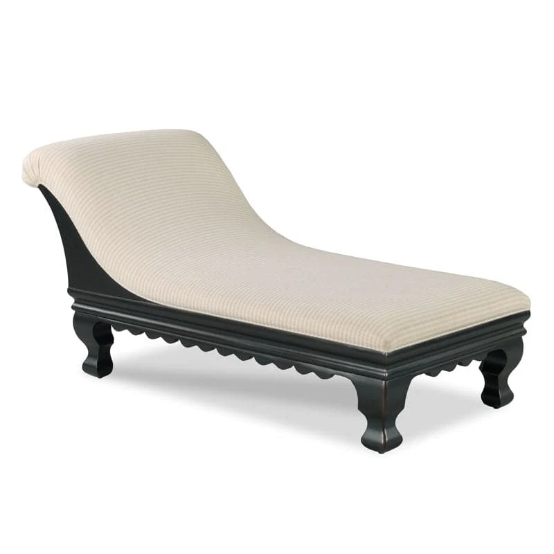 This wonderful American folk version of a French Récamier has a descending curved padded back and seat that is elevated on an ogee shaped molded frame raised on stylized cabriole legs.
