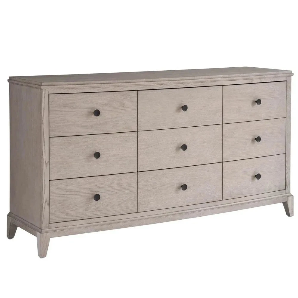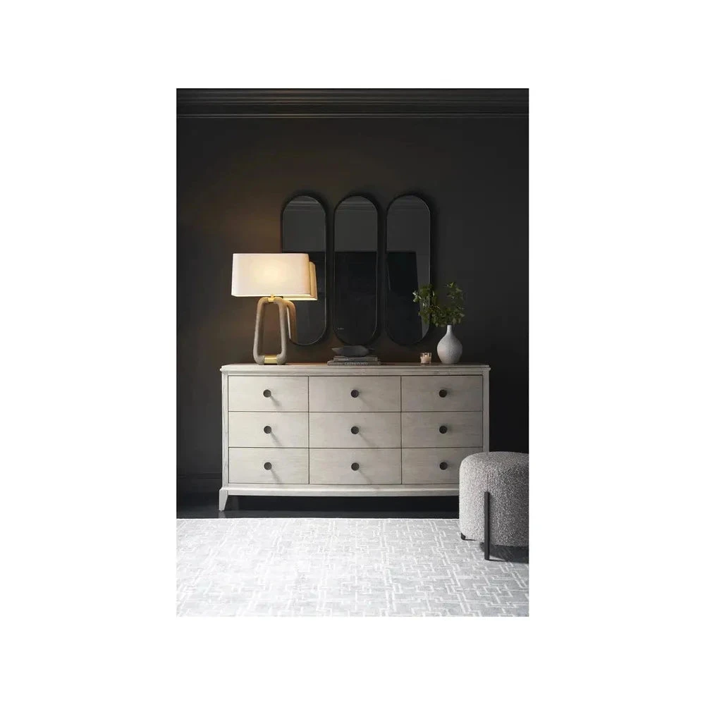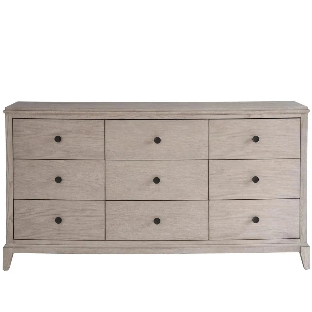 The Coalesce Dresser pairs practicality with sleek design, featuring nine drawers with soft-close undermount guides and simple, rounded metal pulls, blending seamless function with a touch of modern minimalism.