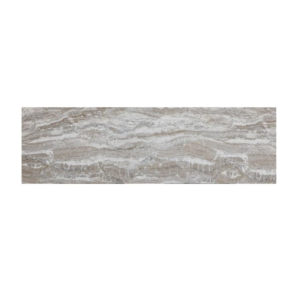 A contemporary bench that illustrates the beauty of natural elements. Crafted from taupe sealed concrete with a marble-look finish. Suitable for indoor and outdoor covered spaces.