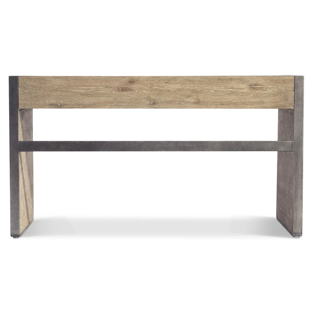 Description: The Colton desk melds modern inspiration with rustic styling for a stunning design. Textured steel frames wood panels on either side of the distressed wood desk top. Visible natural features of the wood add authenticity in the Aurum finish.
