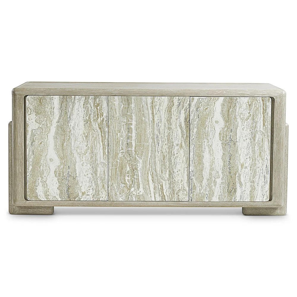 Description: An elemental, serene design marks this stunning Complo buffet. The three doors have faux stone overlays in Kalta finish that mimic flowing woodgrain or swirls of natural marble. The wire-brushed oak case in Clay finish offers a tactile element, while the interior provides necessary functionality.