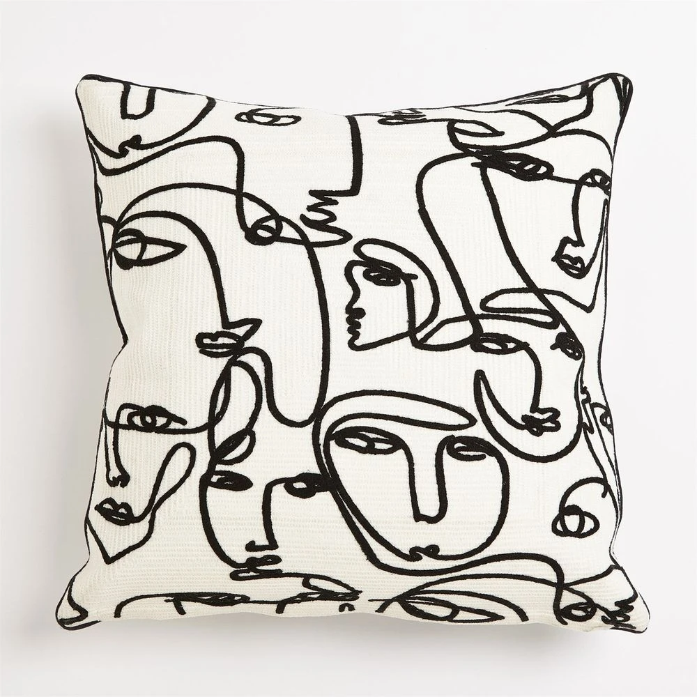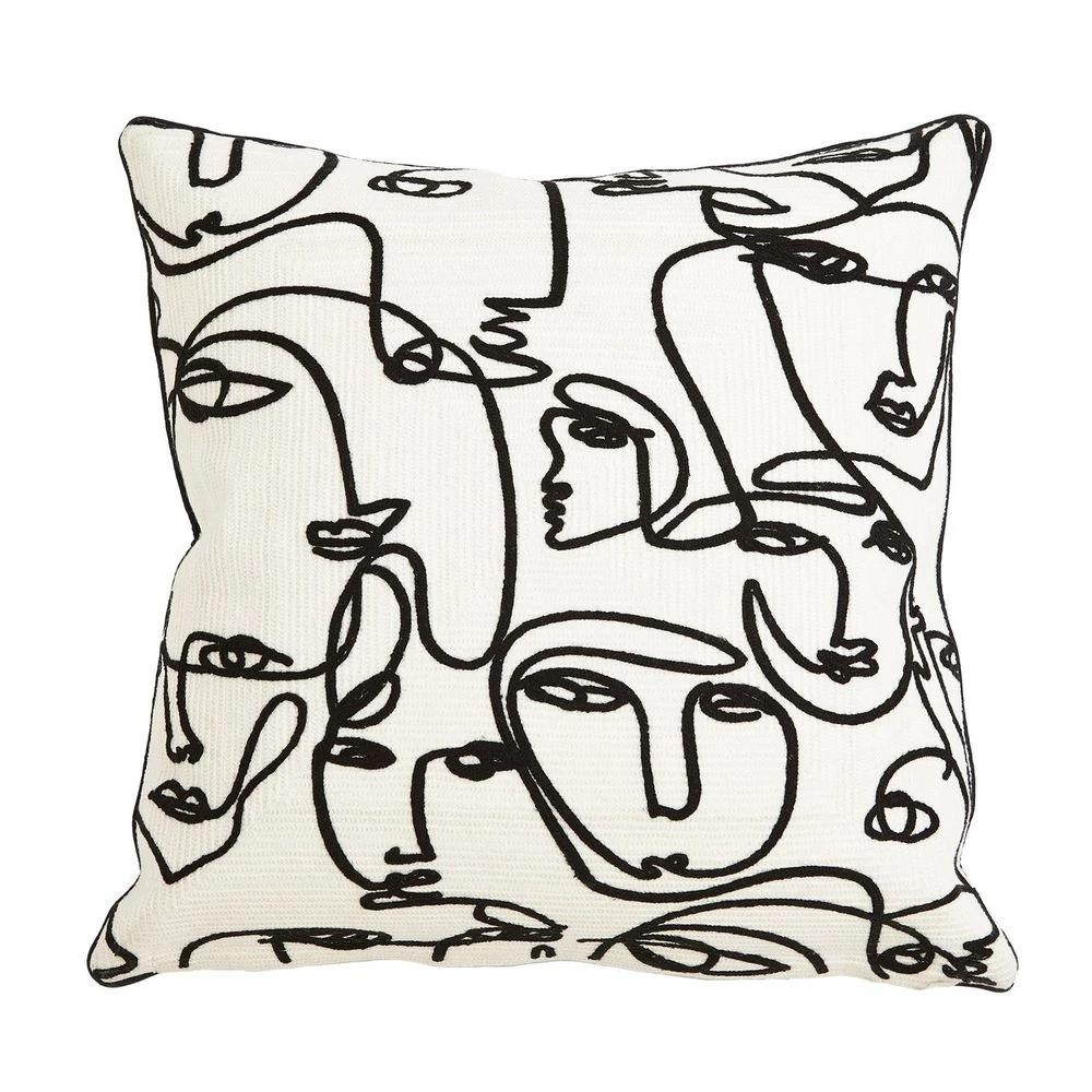 Description: The Congregation Pillow has hand embroidered cotton details and a down fill insert.