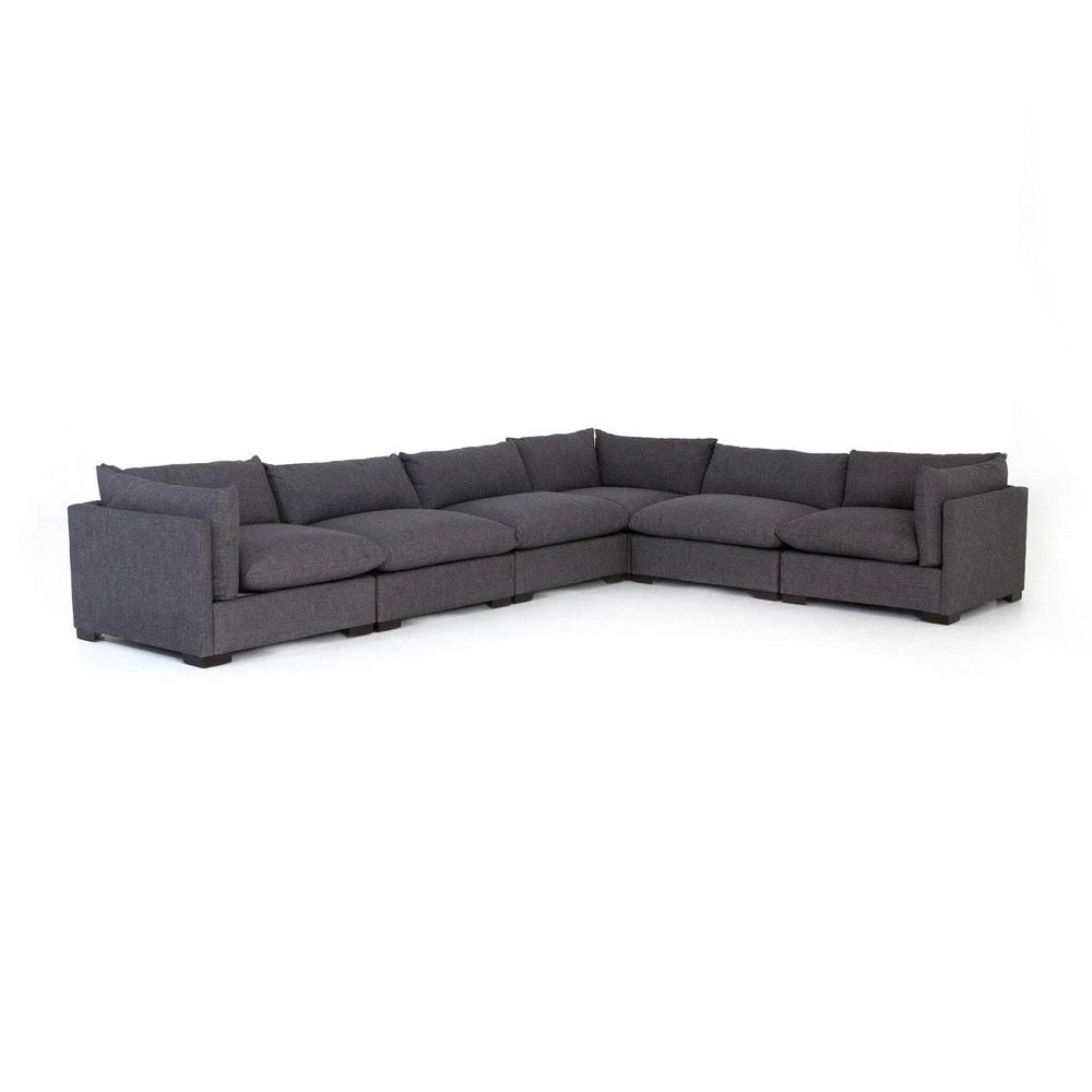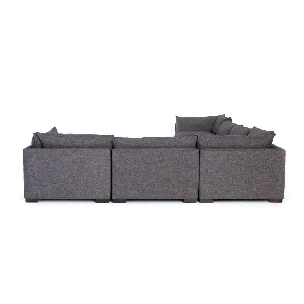 - Description: The ultimate six-piece sectional. Knife edge cushioning is upholstered in an easy-to-clean charcoal high performance fabric that supports modern living.