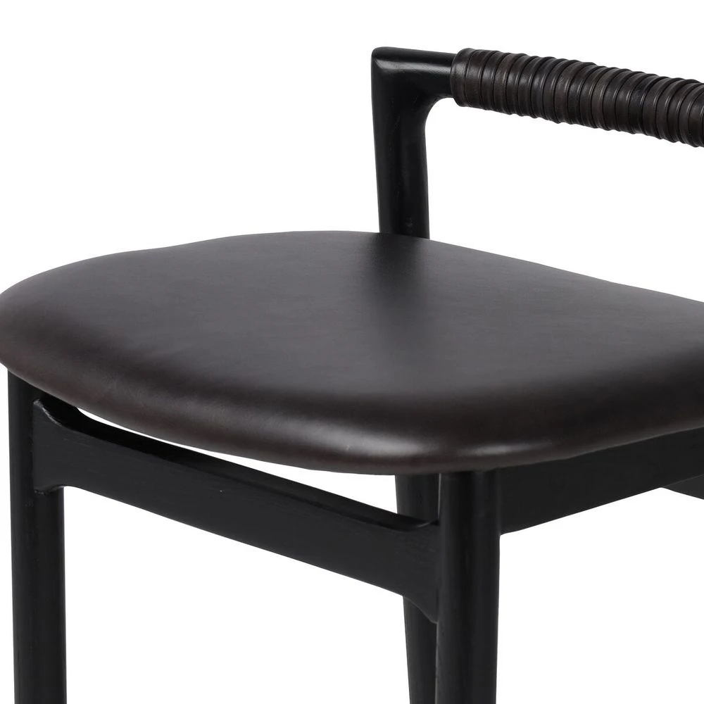 Design-forward with a minimalist parawood frame, this bar-height stool features a low back and float-like seat upholstered in black top-grain leather exclusive to Four Hands. Leather wrap detailing for texture.