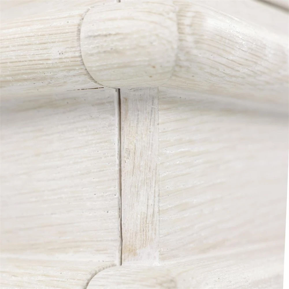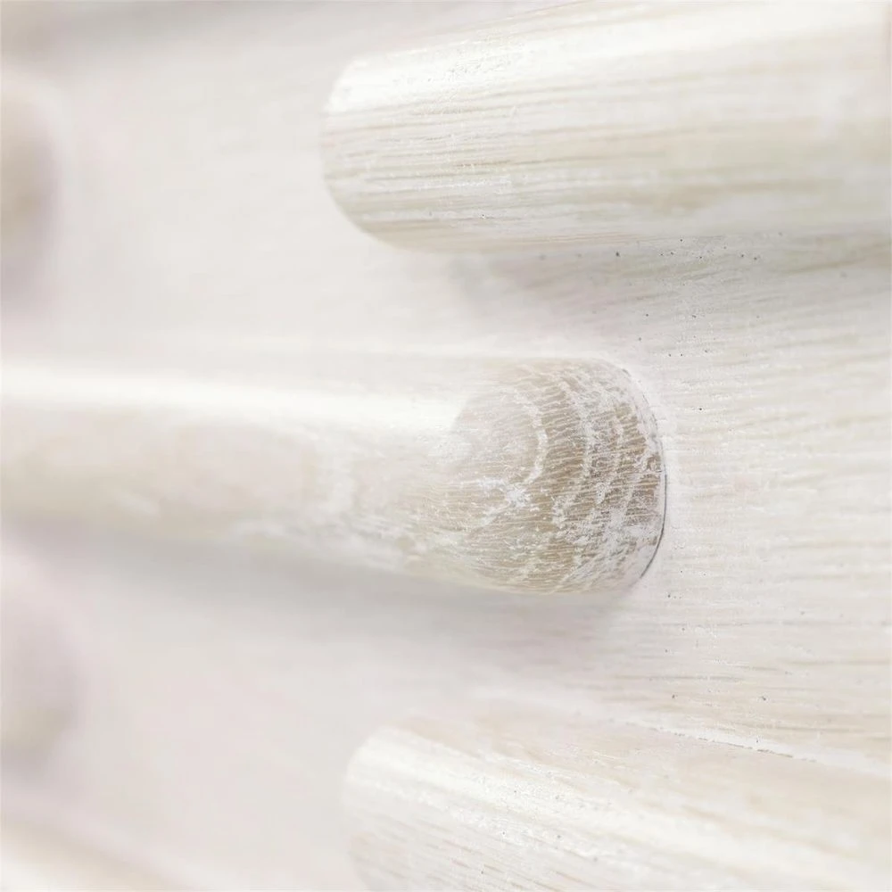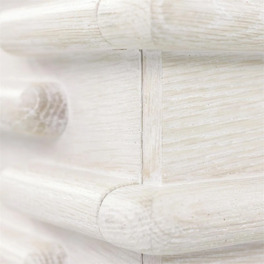 The Crest Chest is a stunning piece that introduces an alluring sense of depth to your décor. Crafted from White Washed oak wood, the piece displays a delicate off-white color that effortlessly blends with a variety of design styles. Several ridged lines envelop the frame to form a chic geometric pattern. The piece is supported by four tapered legs and features three soft closing drawers.