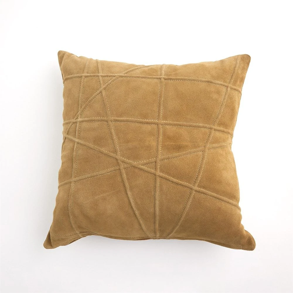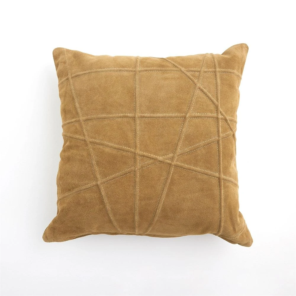 Description: The luxurious Crossroads Pillow is made from 100% suede leather, showcasing a stylish crisscross pattern. It includes a plush down-fill insert for added comfort, making it a perfect accent for any space.