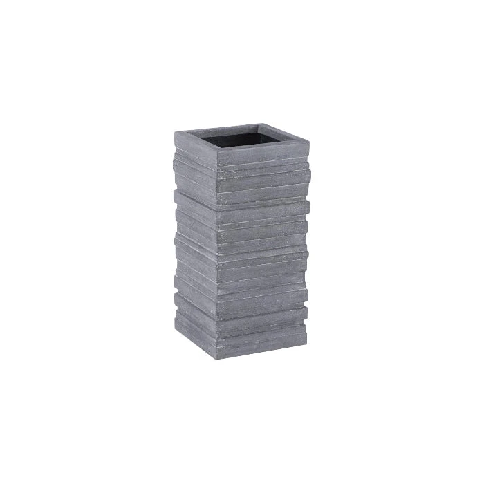 The June Square Gray Planter is good-looking in its handsome gray finish. Made of composite, its surface is striated to mimic fabric that has been wrapped around a vessel and slathered in a beautiful papier-mache treatment. One of the loveliest aspects of this design is that it is strikingly contemporary for a garden planter thanks to its attractive gray finish and the top lip that rolls into its interior to leave the shape clean-lined. We offer this gray garden planter in a number of sizes and shapes, and we have white planters in an array of sizes. Each of these reflects the ethos that Phillips Collection personifies: modern organic.