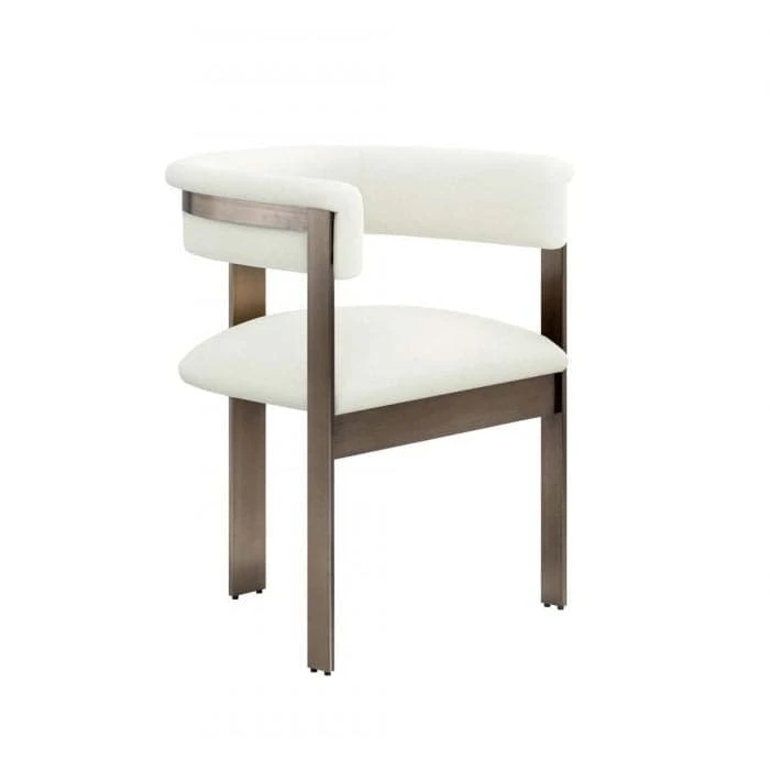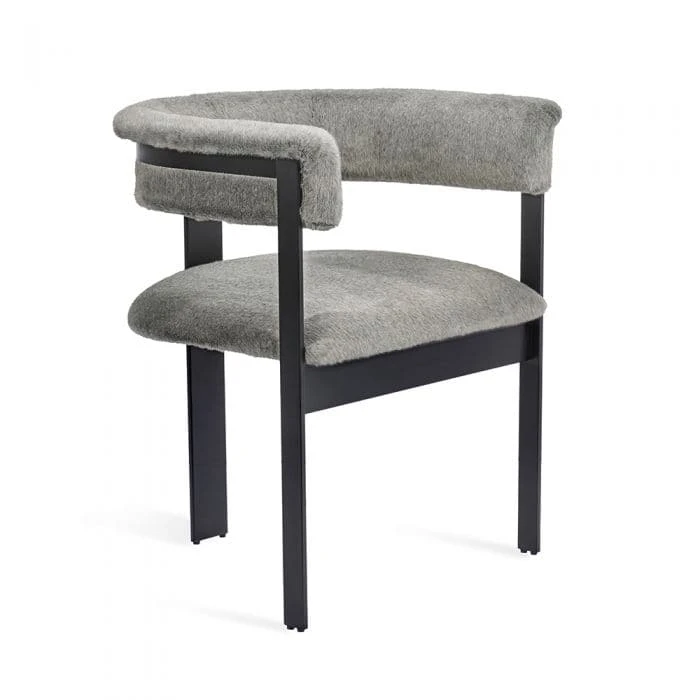 Boasting an art moderne influence, the Darcy Dining Chair features a black and white spotted hide seat and a streamlined stainless steel frame in a matte black finish.