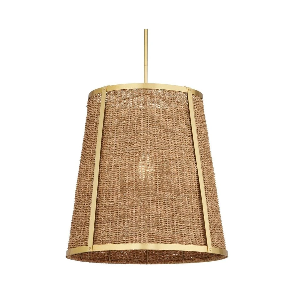 Description: The Deauville Large Pendant was created by Suzanne Duin, who founded the Houston shop and design studio Maison Maison, and is known for a keen eye in sourcing authentic French antiques and home accessories from around the globe. Each piece in her line of woven light fixtures is handmade by artisans in Southeast Asia; the Deauville an example in natural seagrass and steel in a polished brass finish. This tailored pendant trimmed in gold brings both texture and French flair. Adjustable from 30.5″ to 72.5″ with use of included chain/rod kit/cable. If your space calls for a longer drop, additional chain/rods/cable is available for purchase.