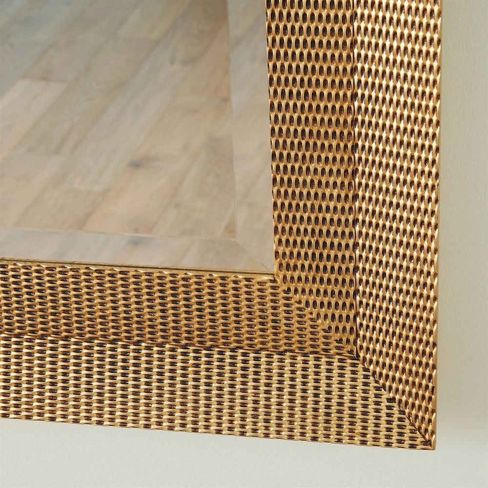 Description: The Delicate Basketweave Mirror exemplifies fine craftsmanship. The process begins with a robust hardwood frame and a plaster-applied gesso finish. The frame is then expertly pressed to achieve a beautiful basketweave texture, finished with a radiant gold hue. This elegant mirror features a beveled edge, making it a striking accent for any space.