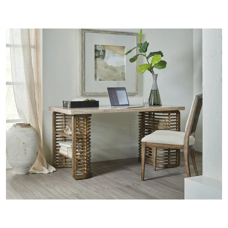 - Material: Pecan Veneers, Rope, Cane, Stone Veneers