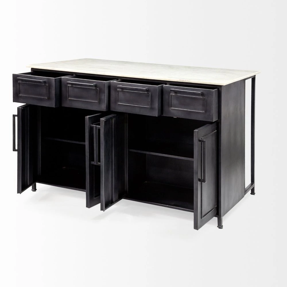 Description: Crafted from metal and finished in a black tone, the Dimitrina is a kitchen island featuring a stunning white marble top in addition to convenient storage.