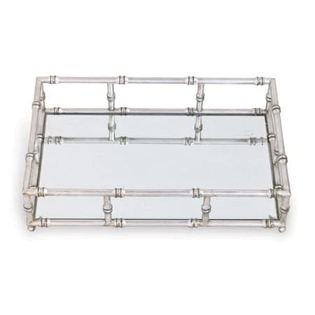 Our Doheny tray is a nod to classic Palm Beach style. Hand burnished gold leaf is accented with a beveled mirror bottom on our steel frame bamboo tray. Perfect as barware, on the vanity or on a grand coffee table.